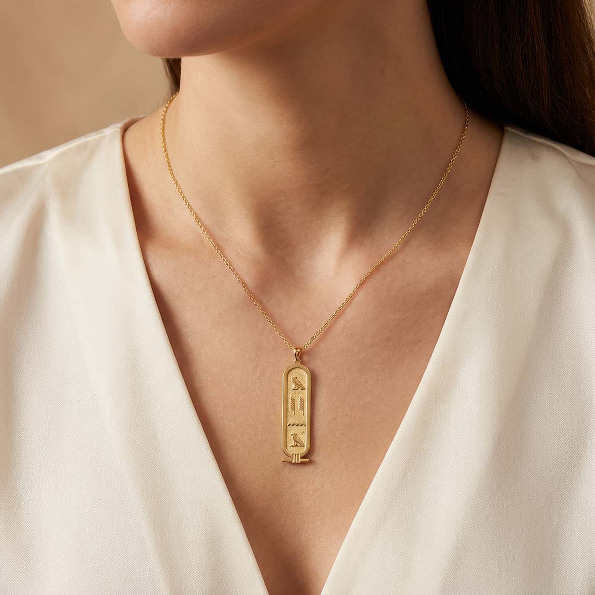 Personalized Cartouche Egyptian Hieroglyph Name Necklace with Back Engraving