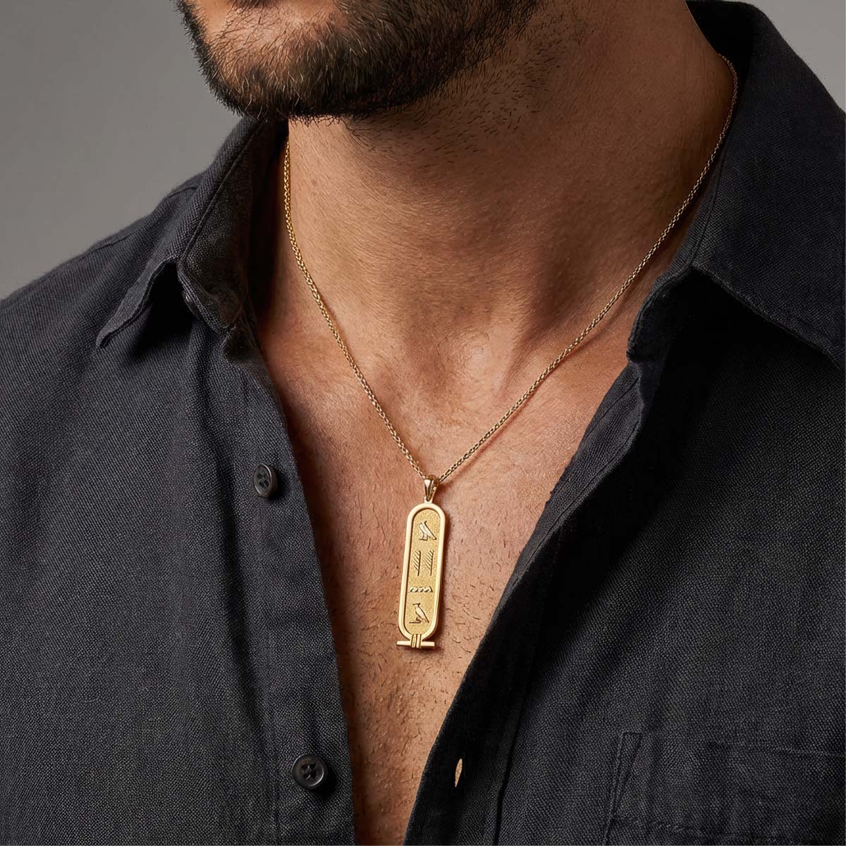 Introducing our Personalized Cartouche Egyptian Hieroglyph Name Necklace with Back Engraving – a distinctive expression of individuality. Carefully crafted in solid gold or sterling silver, this necklace boasts a captivating cartouche design featuring traditional Egyptian hieroglyphs spelling out your name. What sets it apart is the added personal touch with back engraving, making this piece even more special. Elevate your style with this timeless accessory, choosing between the opulence of gold or the classic charm of silver. Make a statement and celebrate your unique identity with the Personalized Cartouche Egyptian Hieroglyph Name Necklace with Back Engraving – a perfect gift or self-indulgent treasure!
