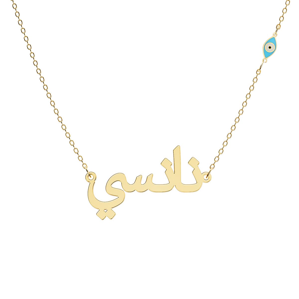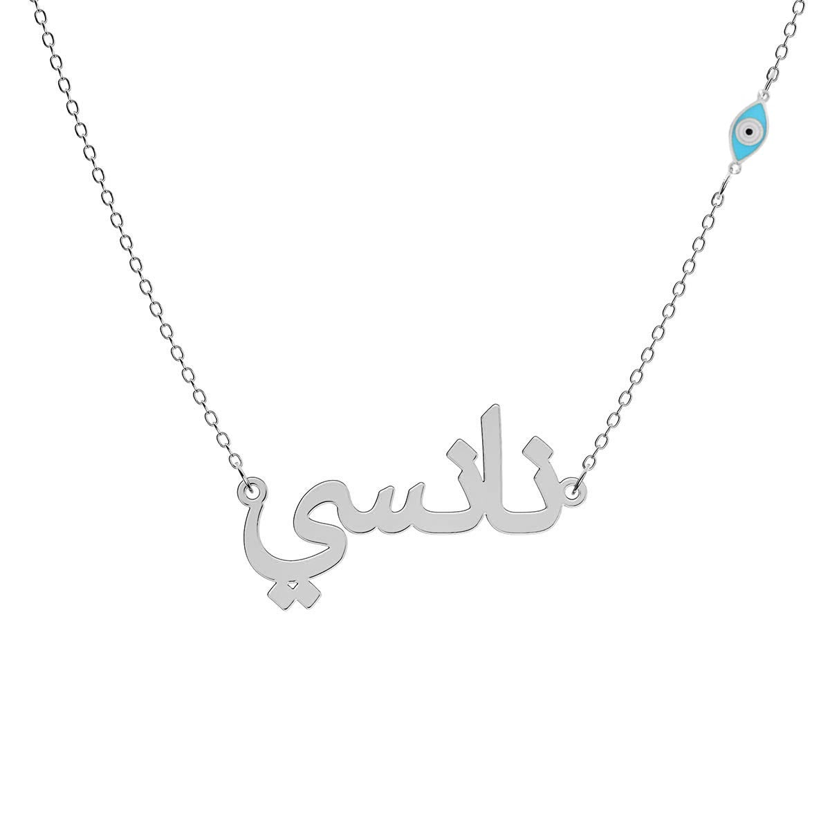 Arabic Personalized Name Necklace With Turquoise Evil Eye Chain Charm