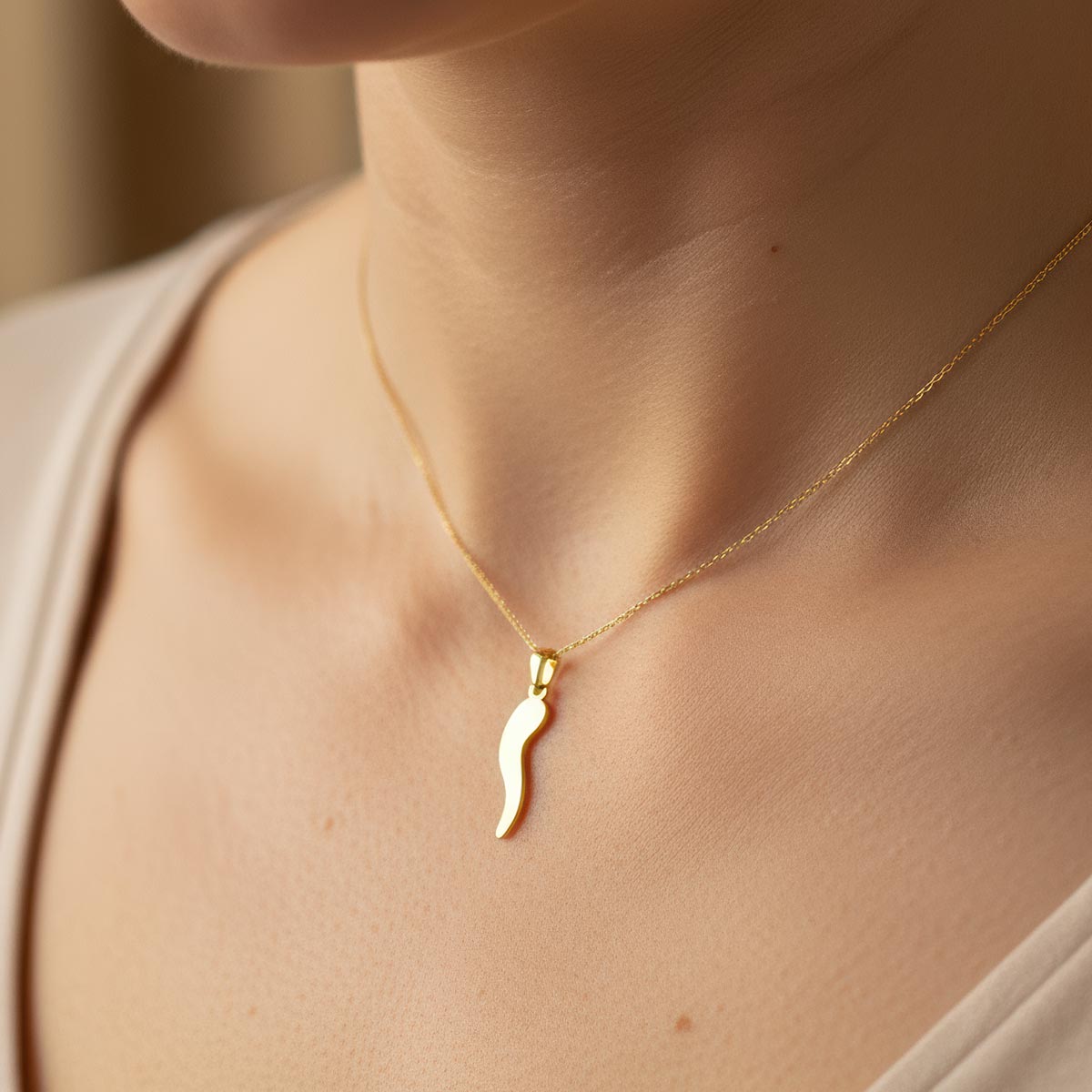 Flat Abstract Italian Horn Cornetto Pendant