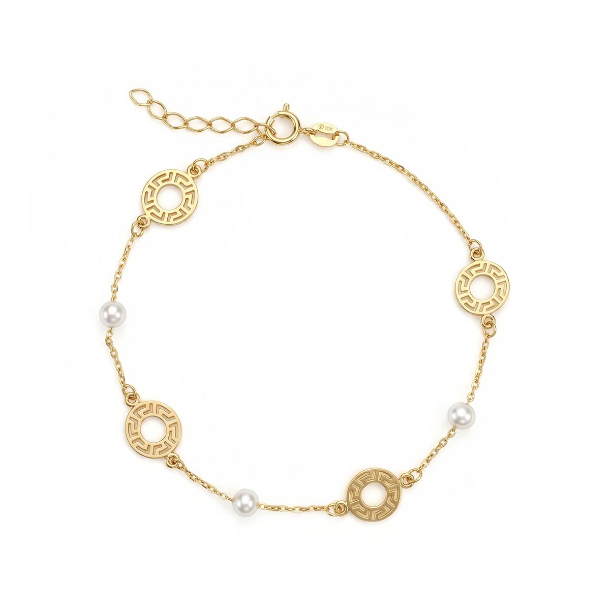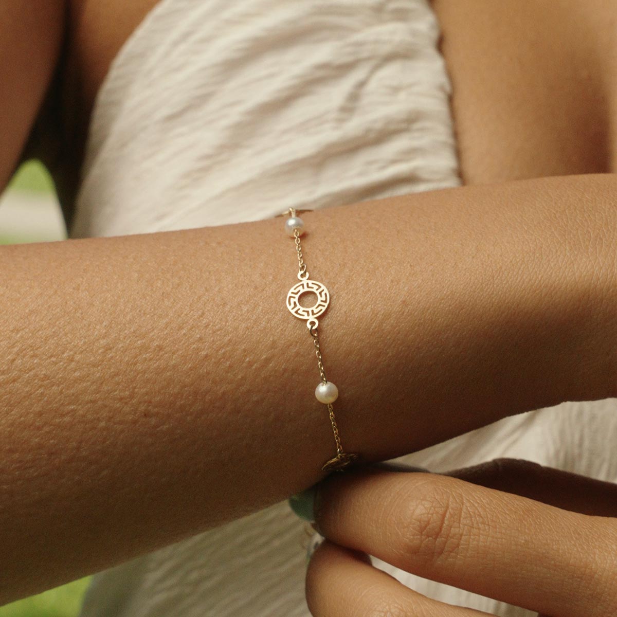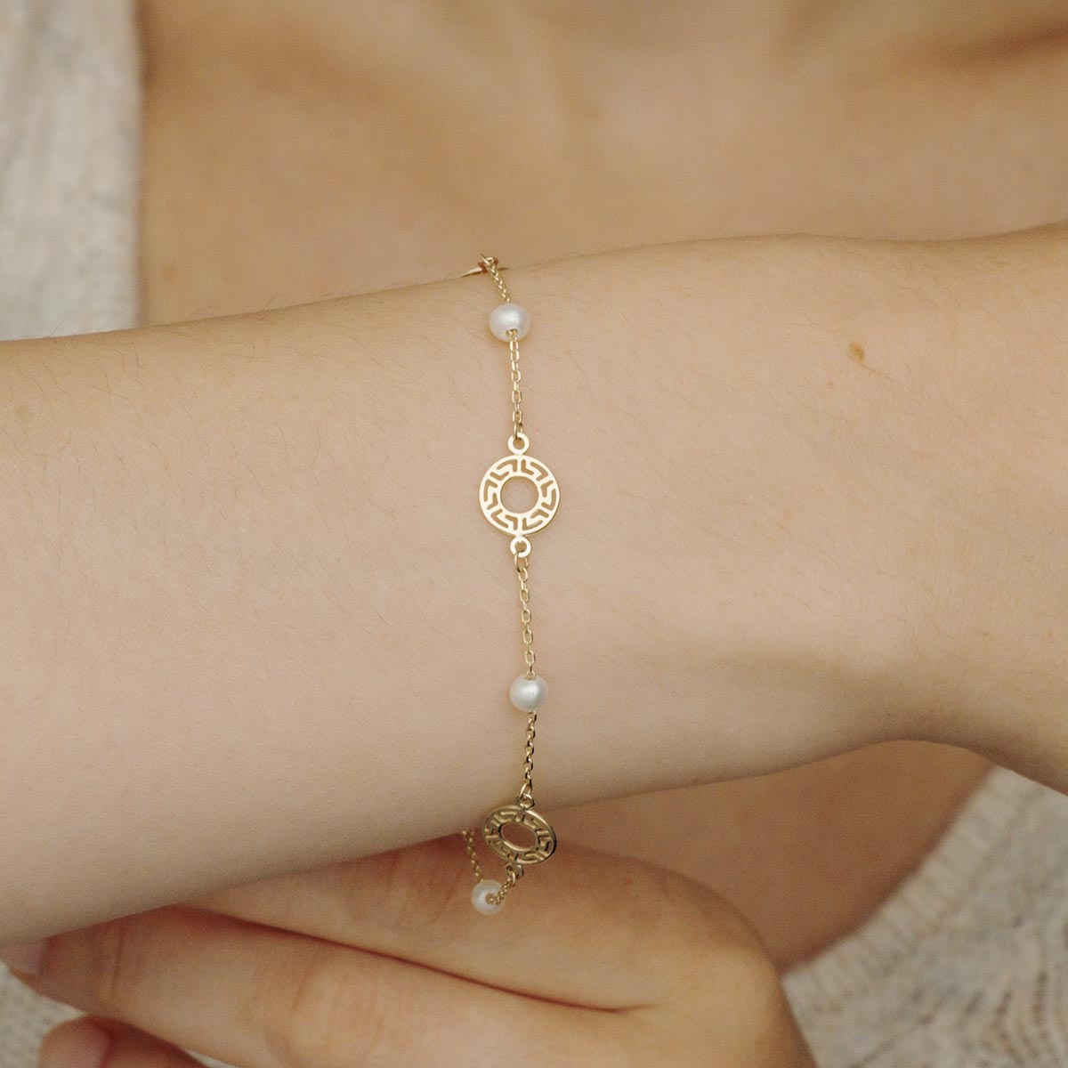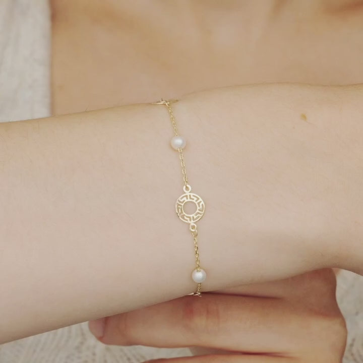 Greek Key Disc Pearl Bracelet