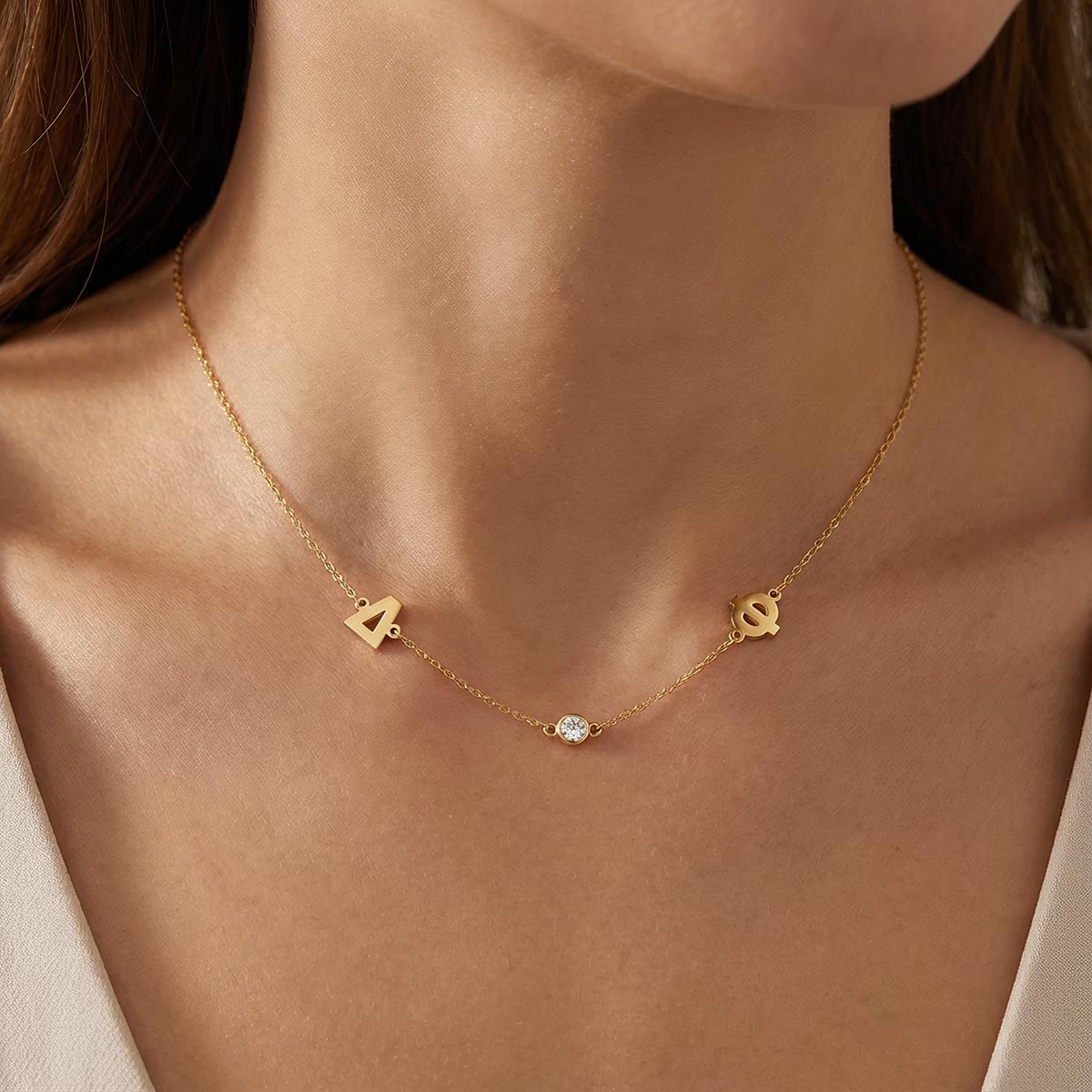 Greek Personalized 2 Initial Necklace With Stone Bezel Charm