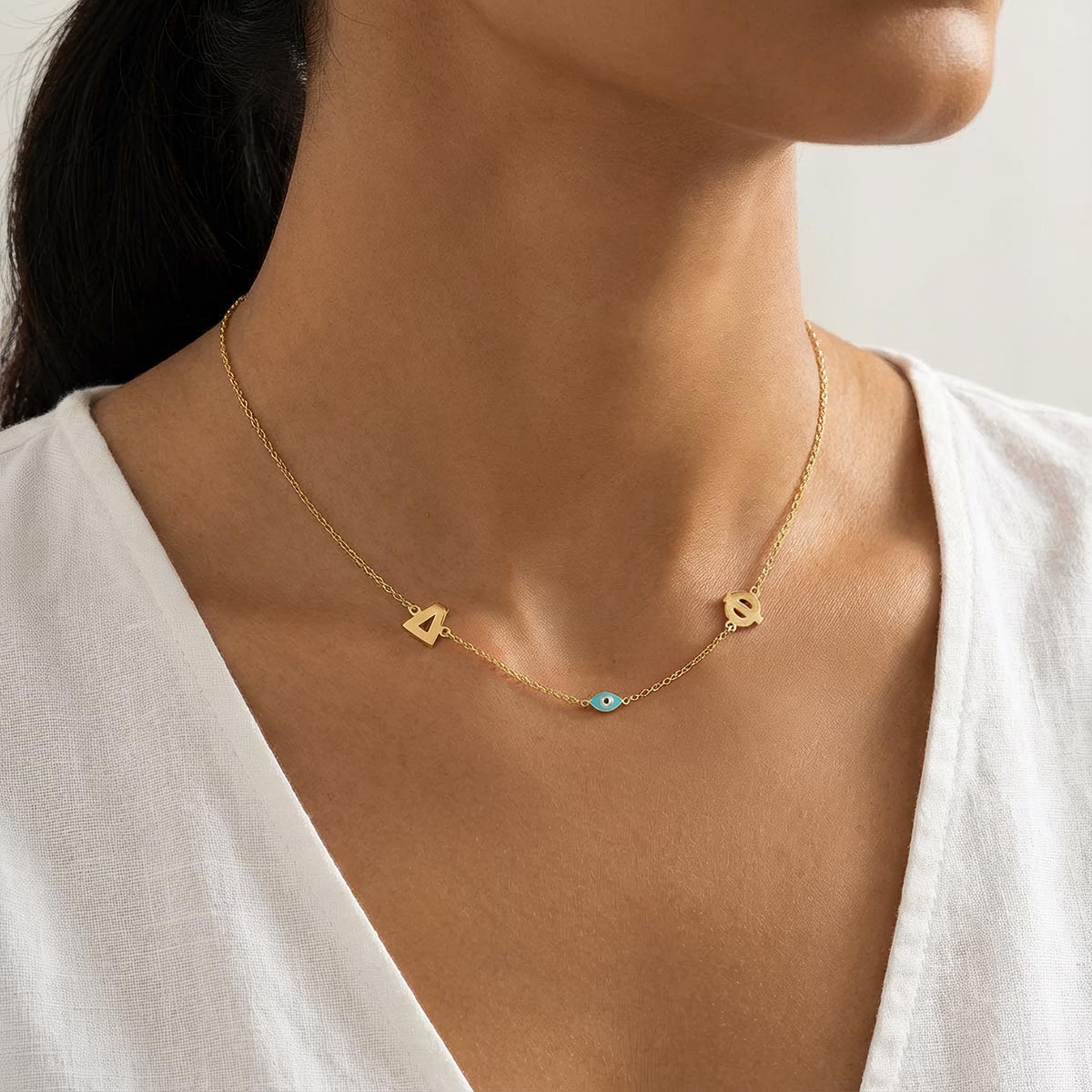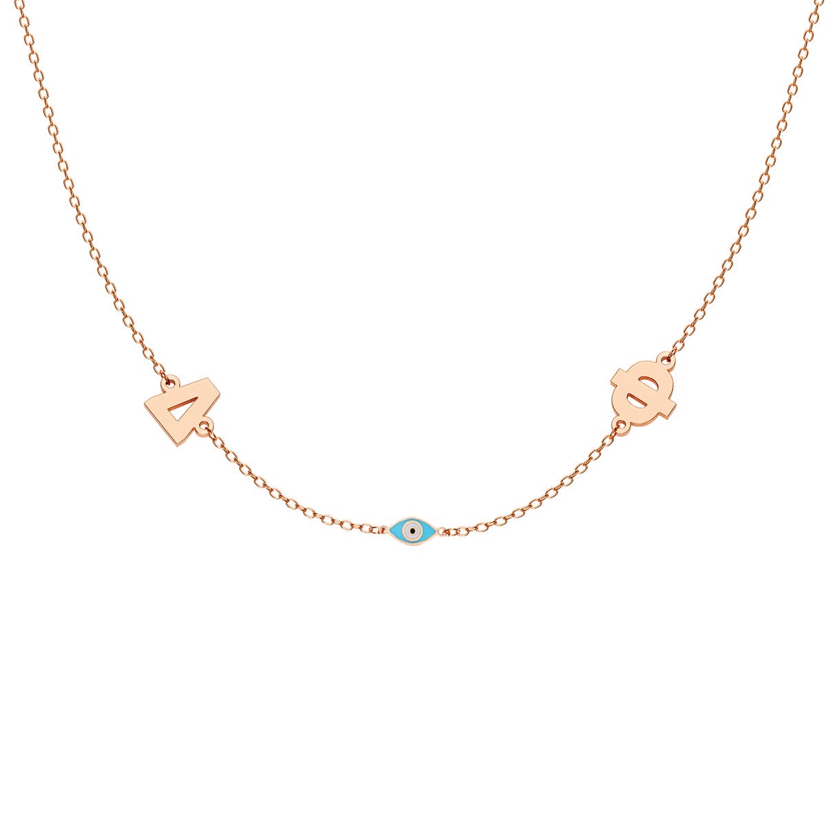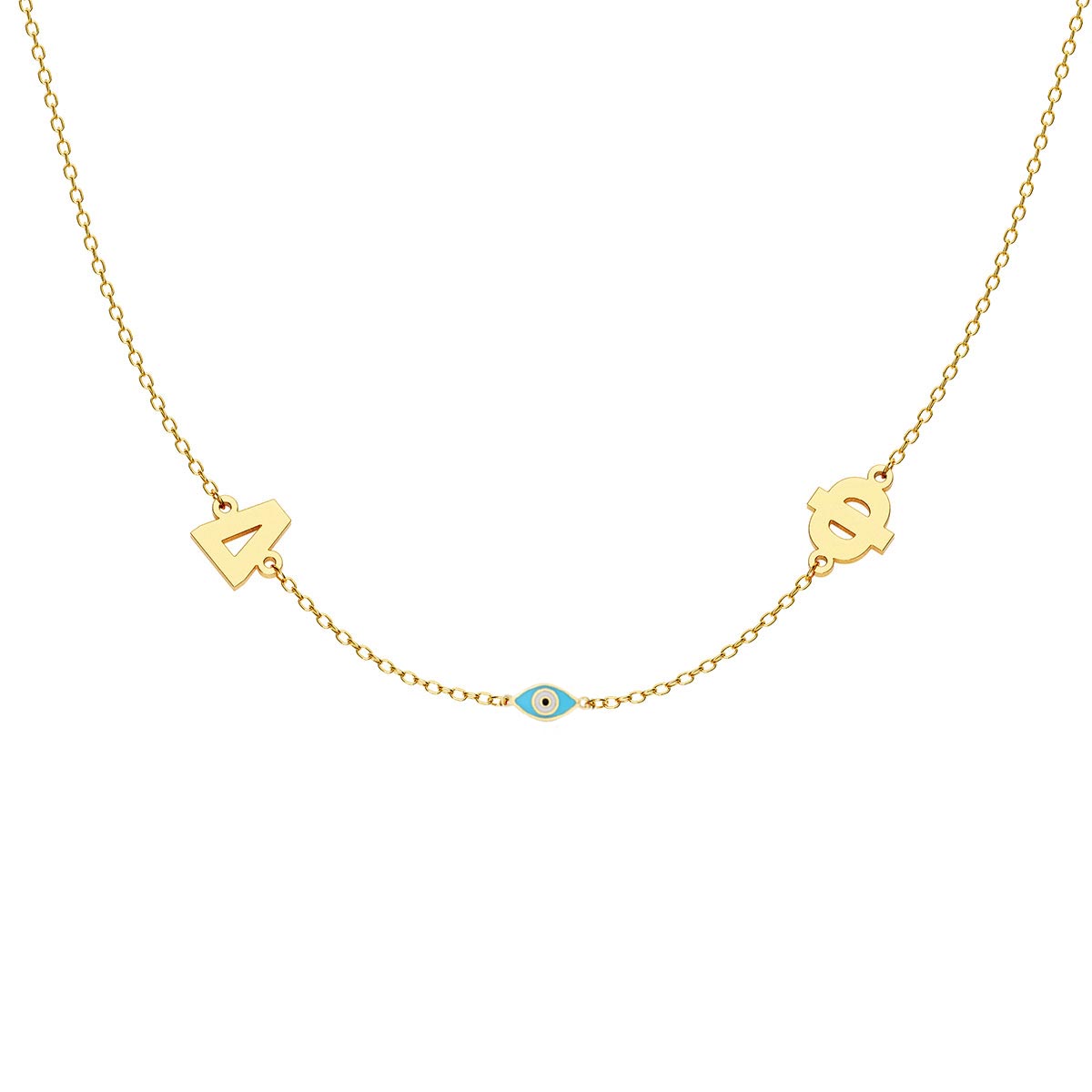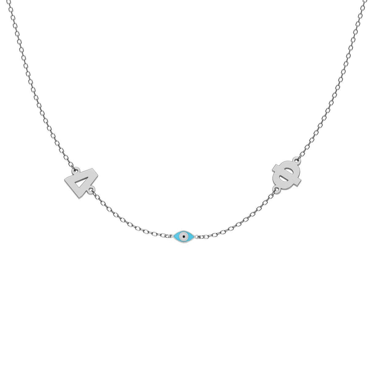Greek Personalized 2 Initial Necklace With Turquoise Evil Eye Charm