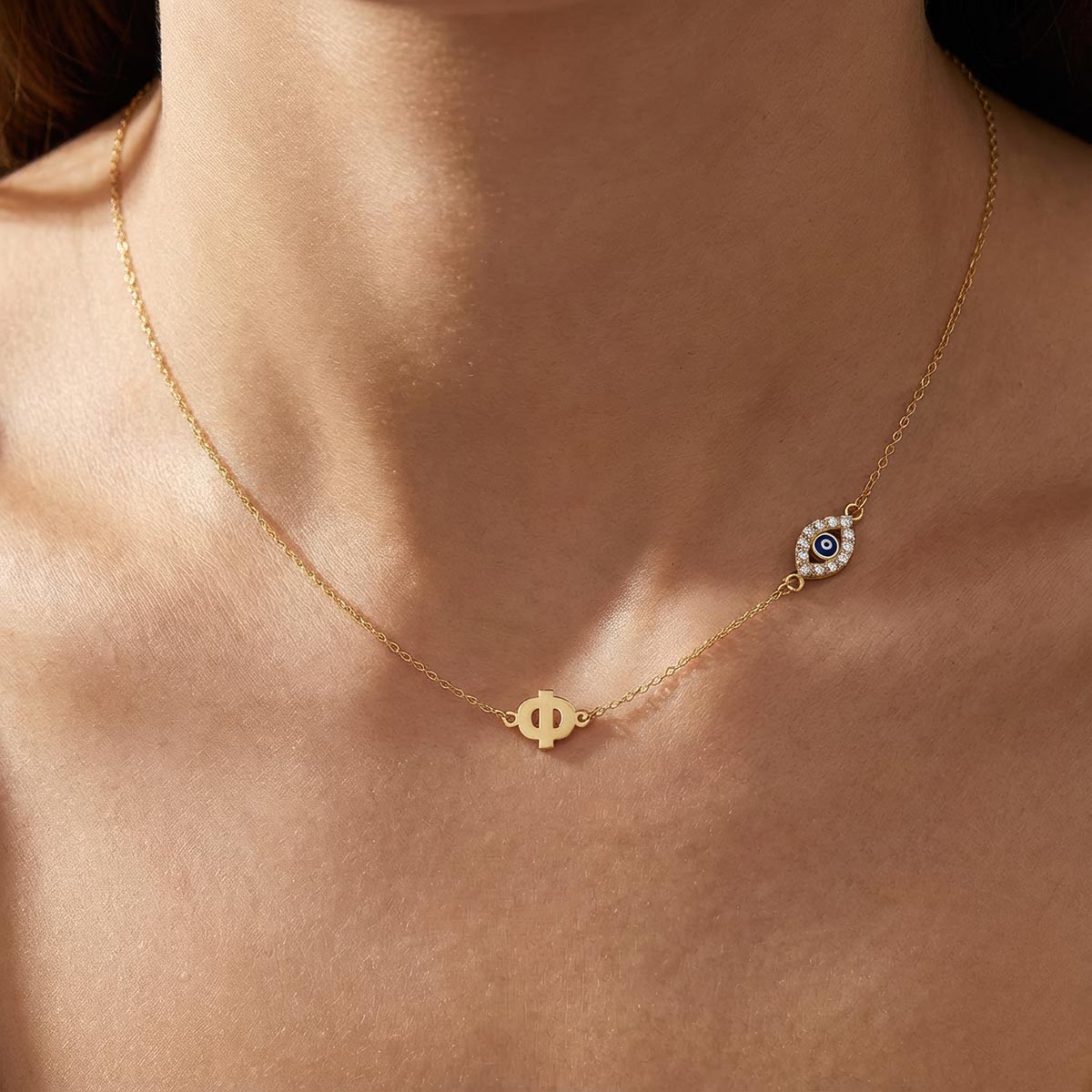Greek Personalized Initial Necklace With Marquise Evil Eye Pavé Charm