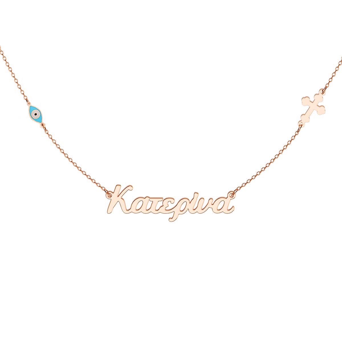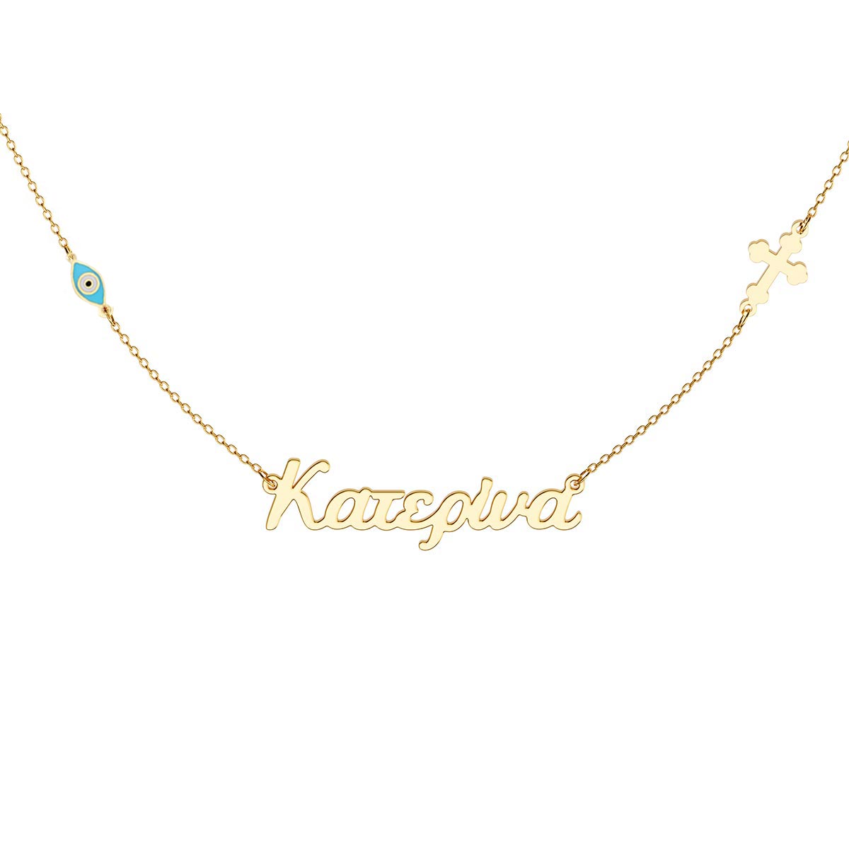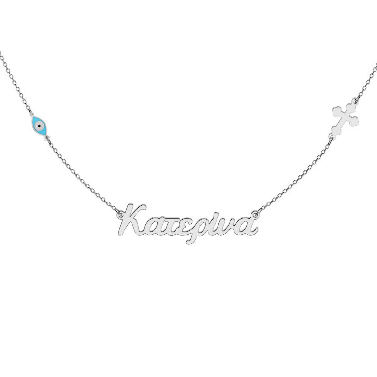 Greek Personalized Name Necklace With Turquoise Evil Eye Charms
