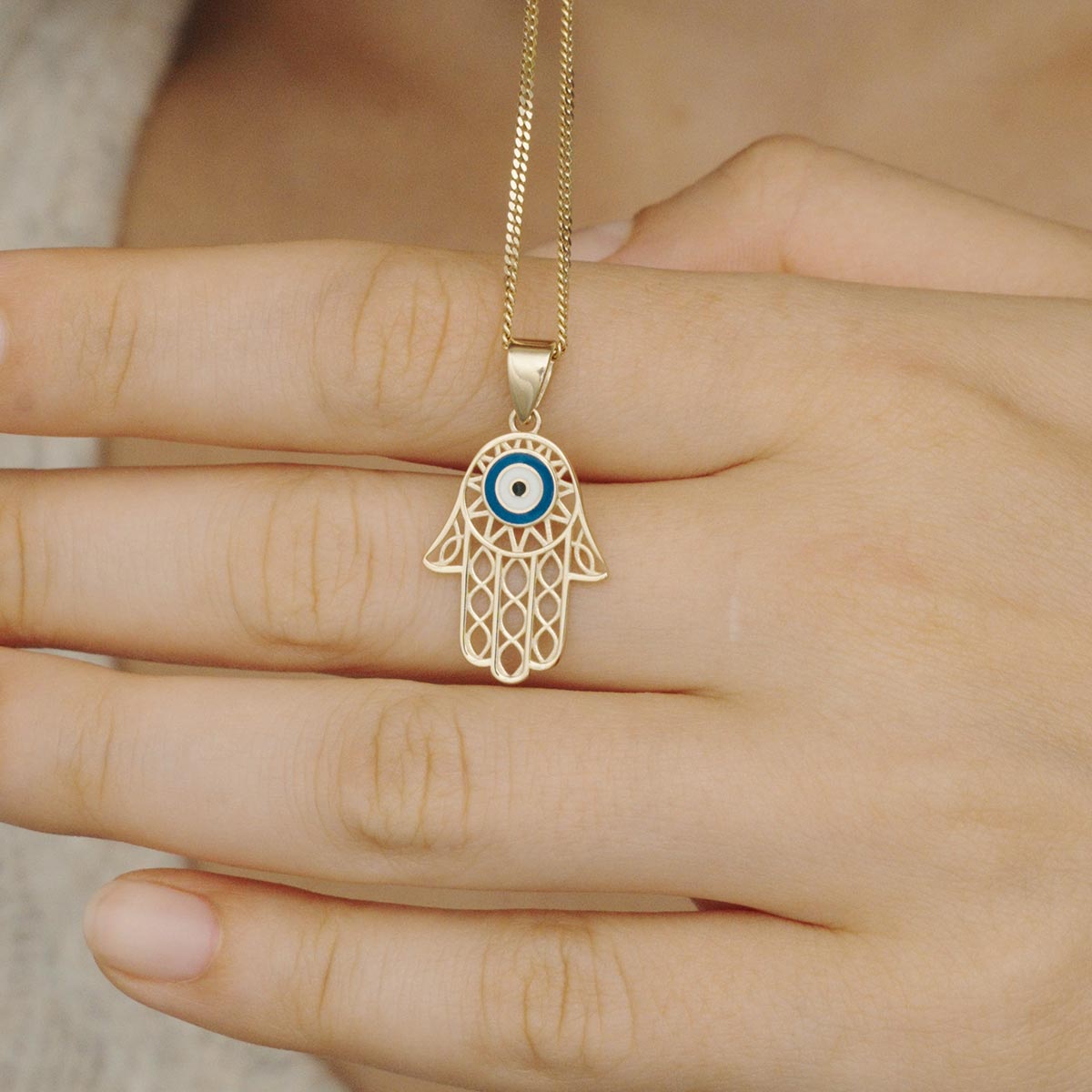 Hamsa Hand Evil Eye Enamel Pendant