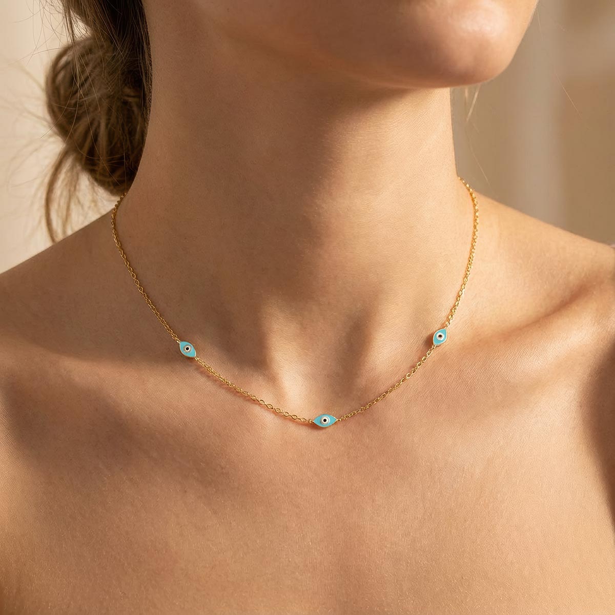 The Multiple Round Enamel Evil Eye Charm Necklace is a stunning piece of jewelry that combines the traditional evil eye symbol with modern design. Available in solid gold or sterling silver, this necklace features multiple round enamel evil eye charms and a delicate chain. The combination of the charms and the sleek chain creates a unique and stylish piece that is sure to turn heads.