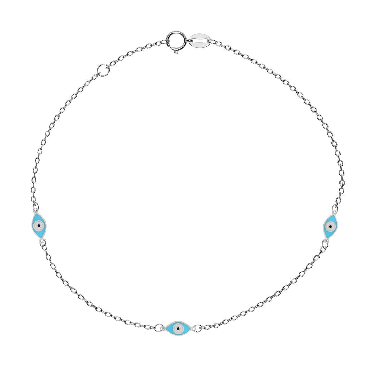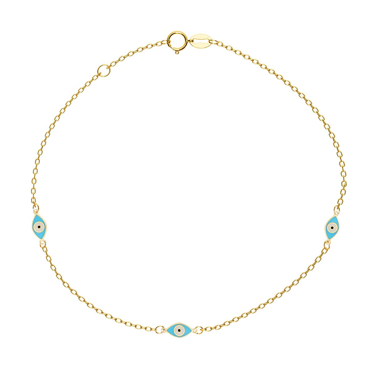 Ward off negative energy and bring some glamour to your look with our multiple round evil eye charm bracelet. This stunning piece features several round enamel evil eye charms, all expertly crafted from high-quality materials. The adjustable chain ensures a perfect fit for any wrist size, making this bracelet a versatile accessory that can be worn alone or layered with other jewelry.