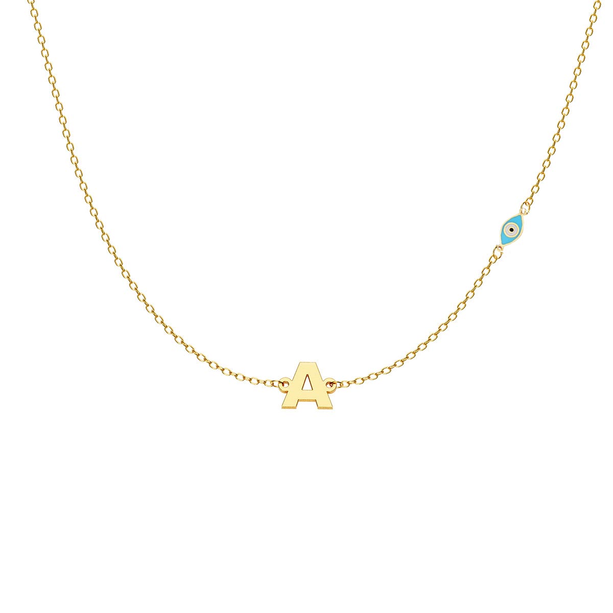 Personalized Initial Necklace With Turquoise Evil Eye Charm
