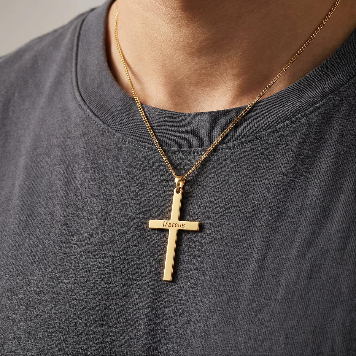 Personalized Men's Modern Cross Necklace With Name Engraving