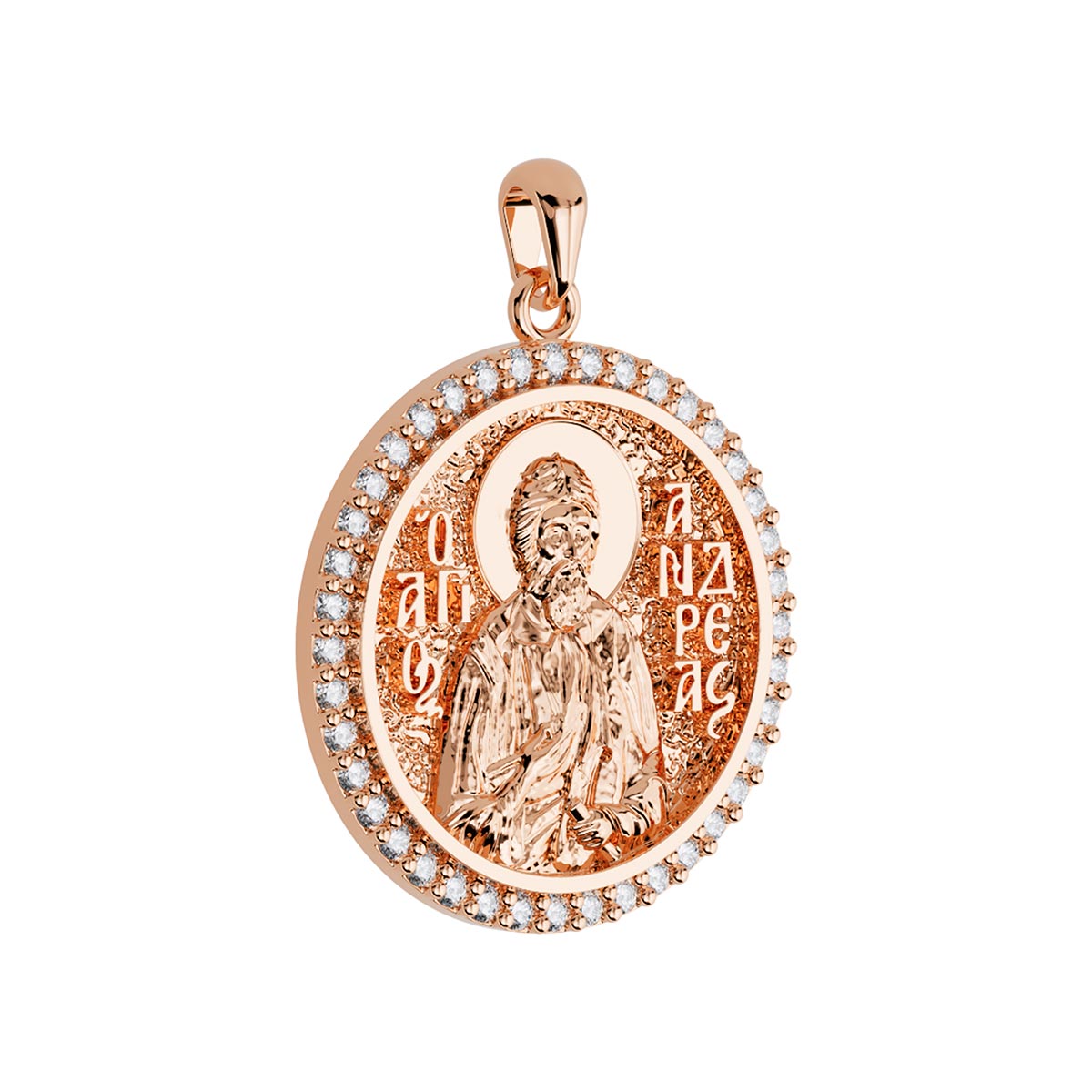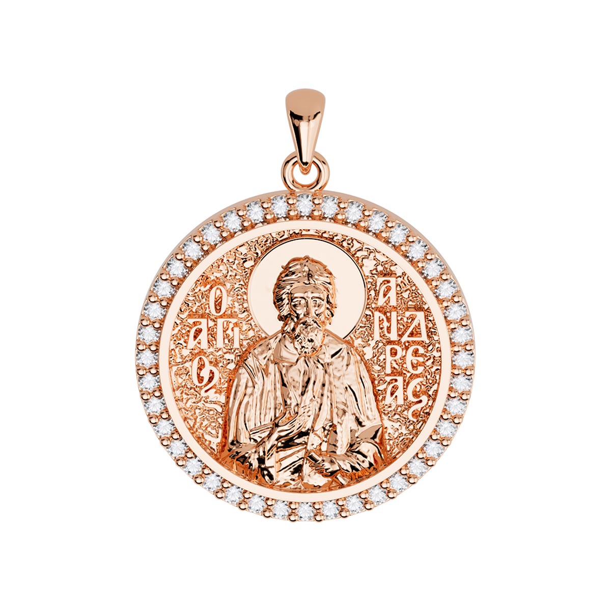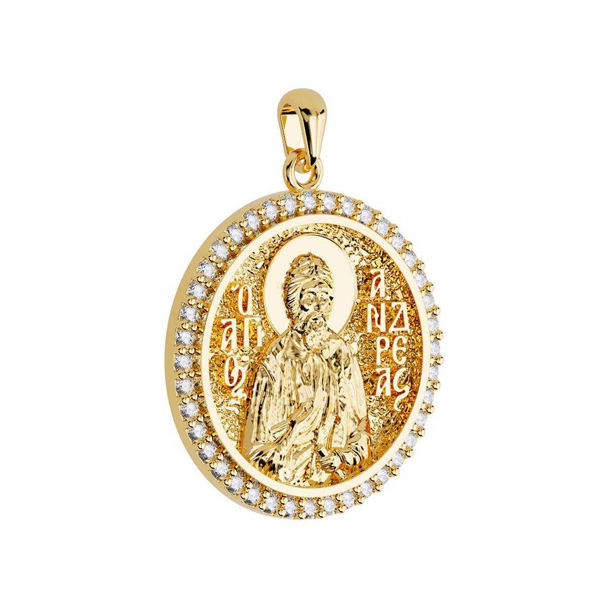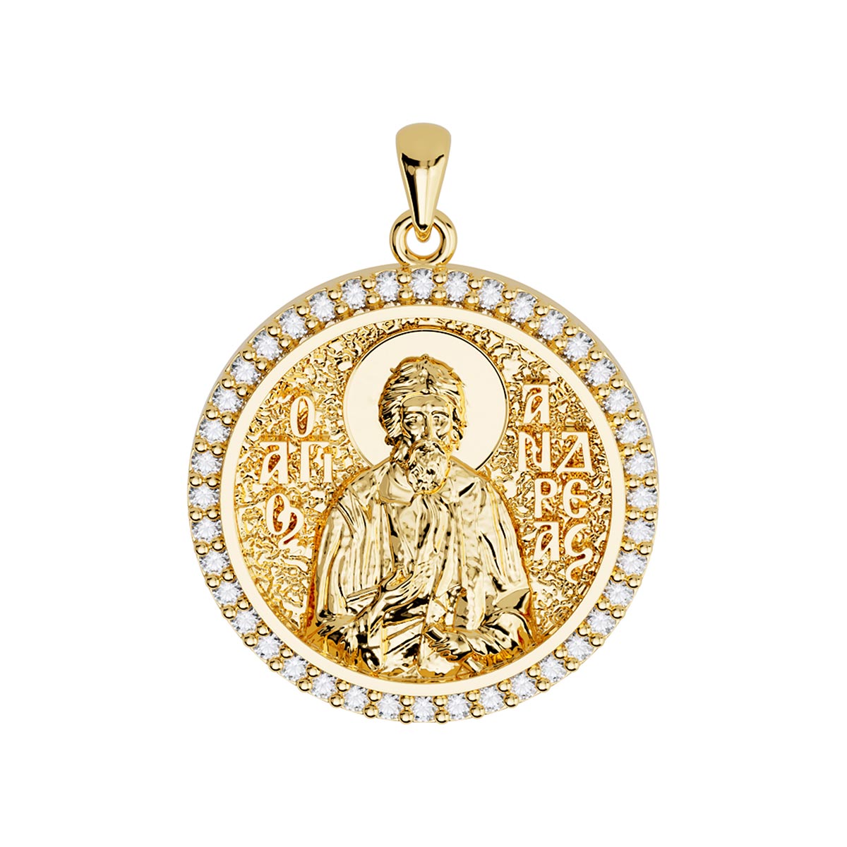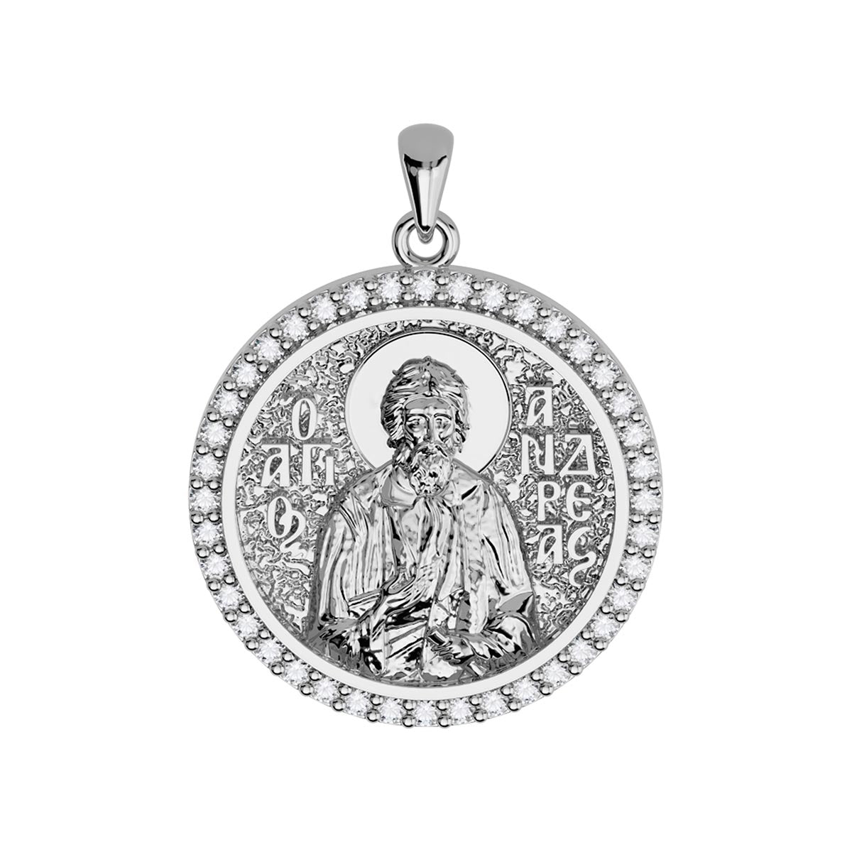 Saint Andrew (Andreas) the Apostle Orthodox Icon Sculpted Medium Pavé Round Medal