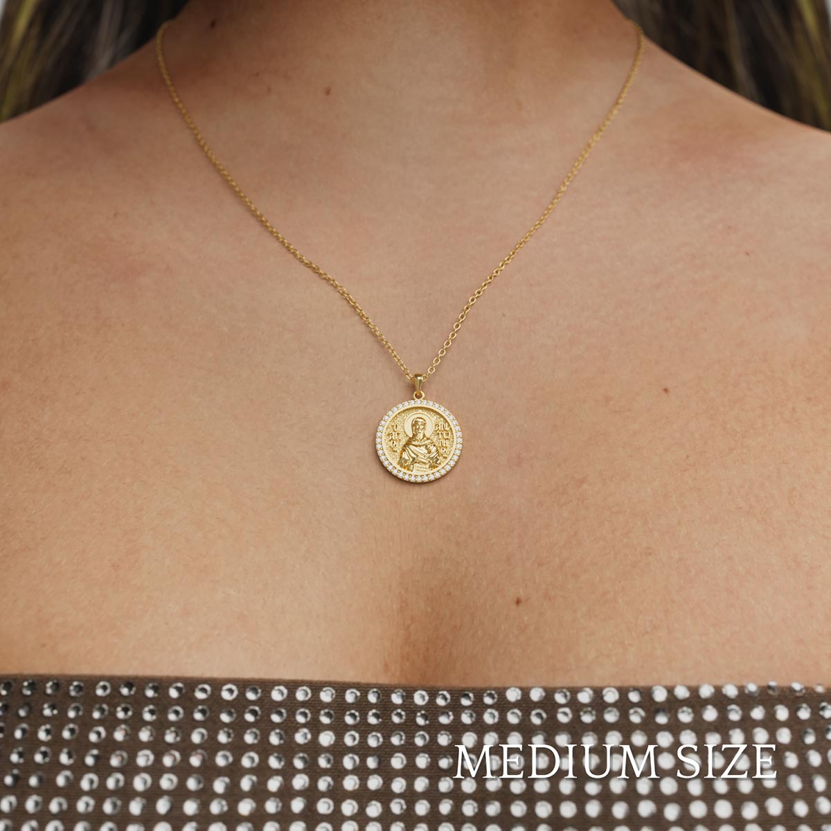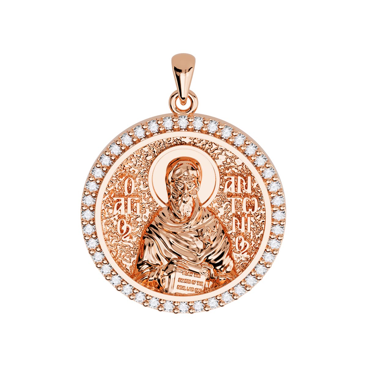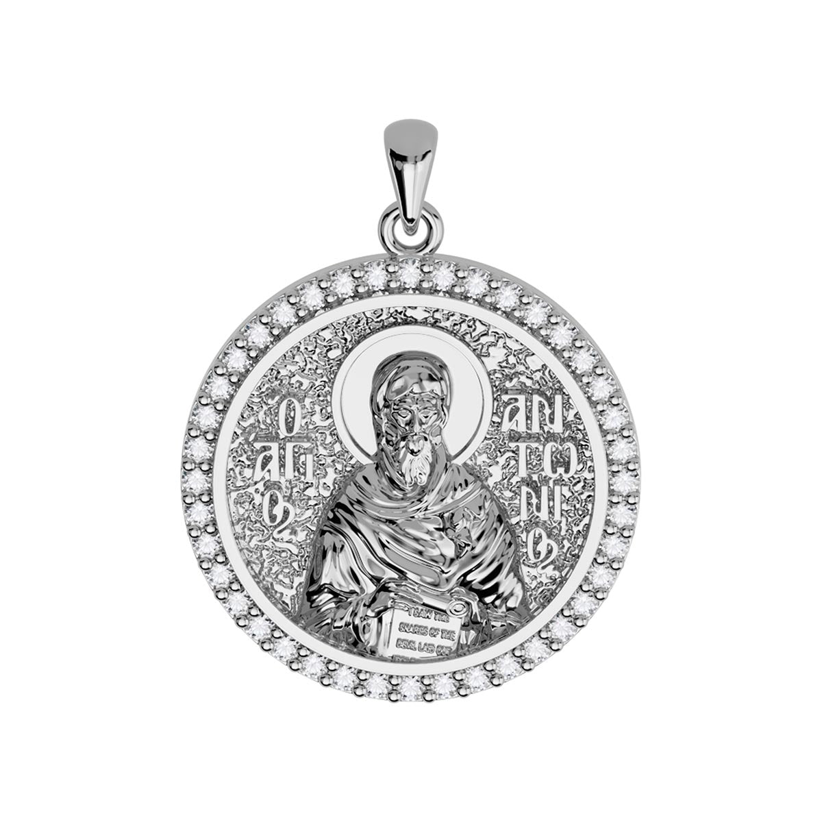 Saint Anthony the Great Orthodox Icon Sculpted Medium Pavé Round Medal