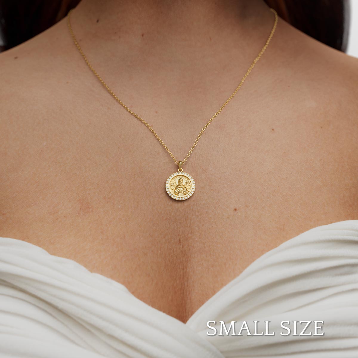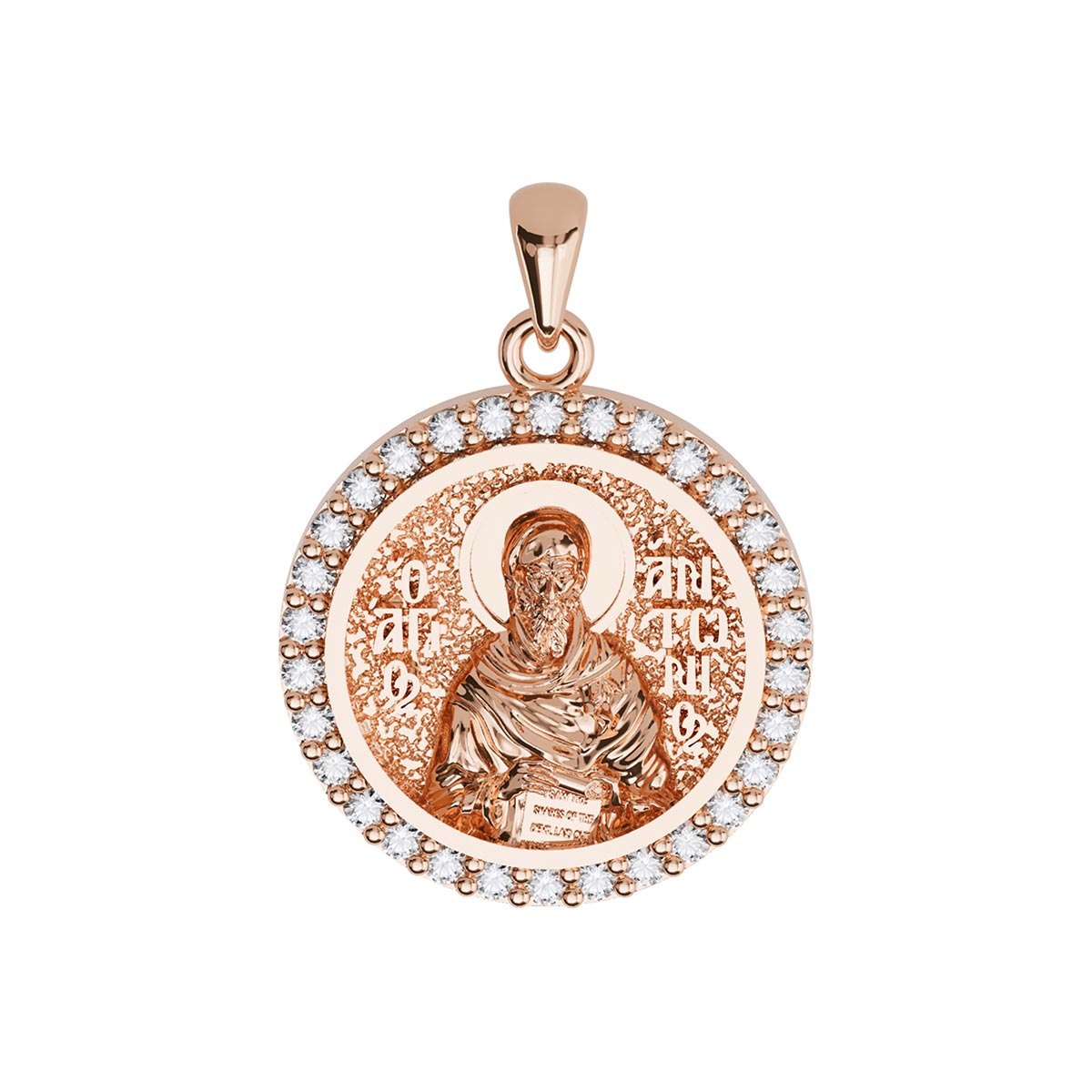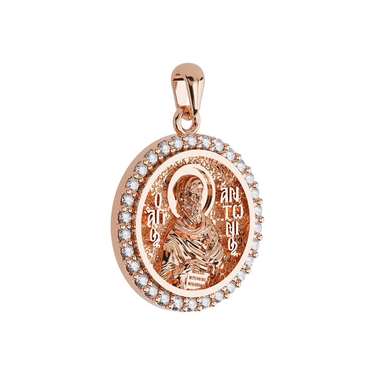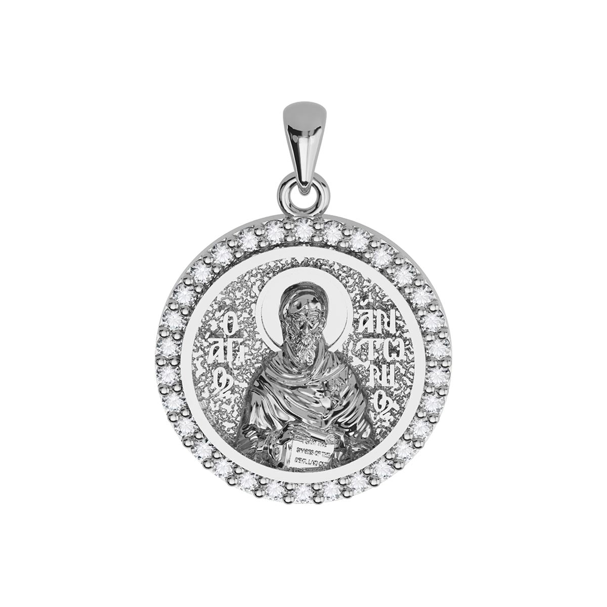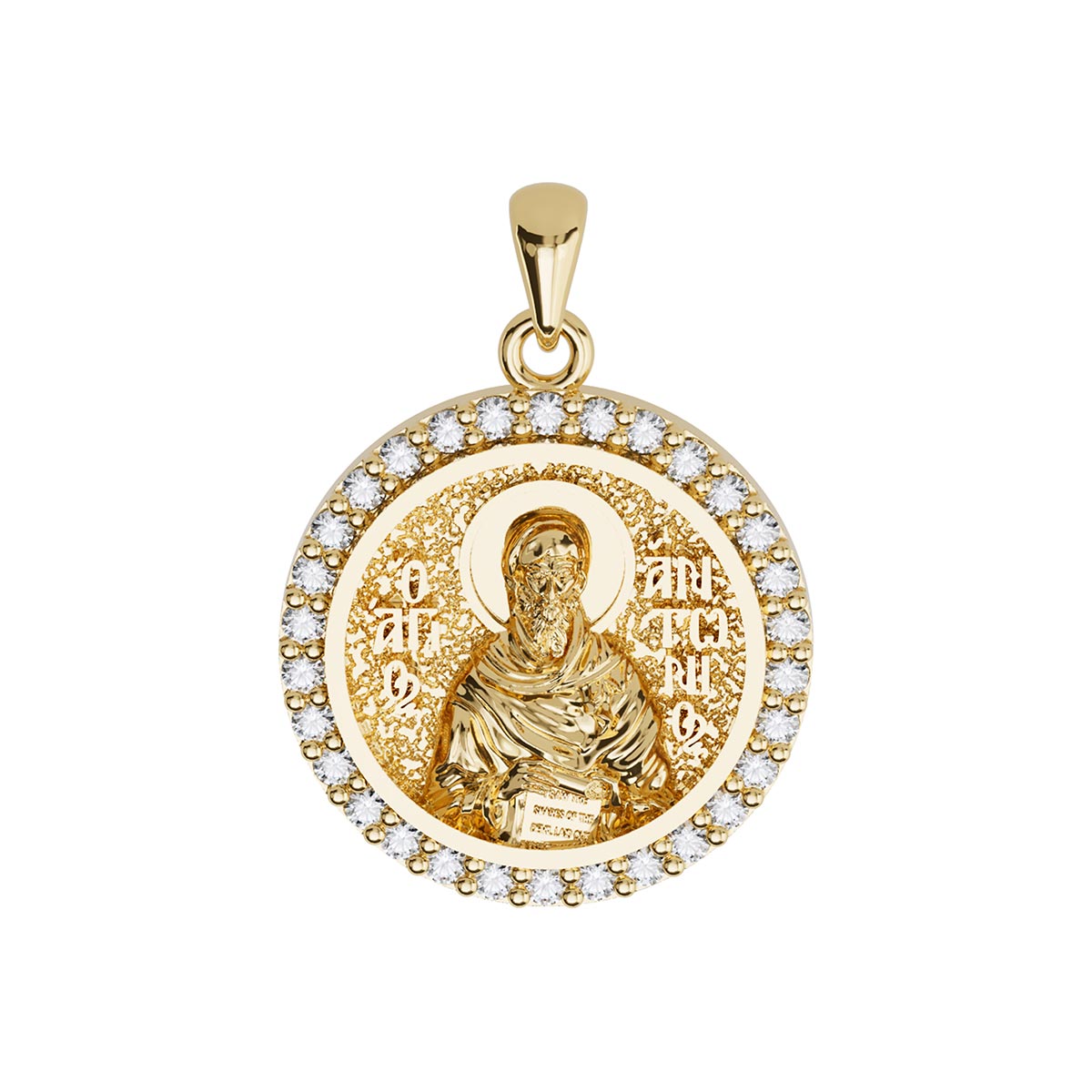 Saint Anthony the Great Orthodox Icon Sculpted Small Pavé Round Medal