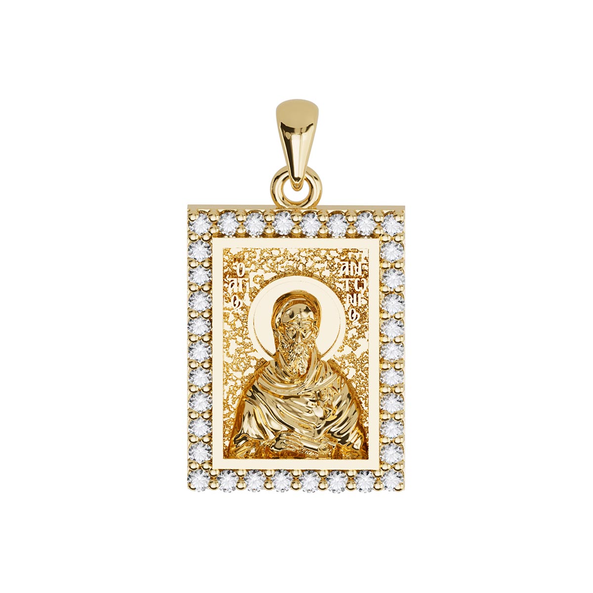 Saint Anthony the Great Orthodox Icon Sculpted Small Pavé Tag Medal