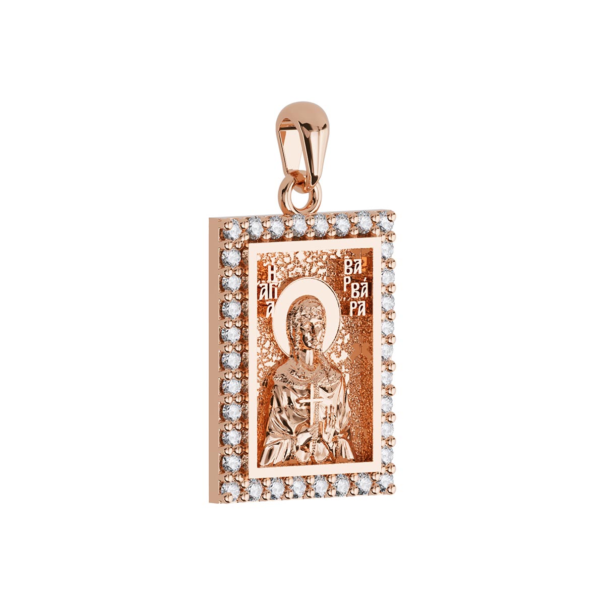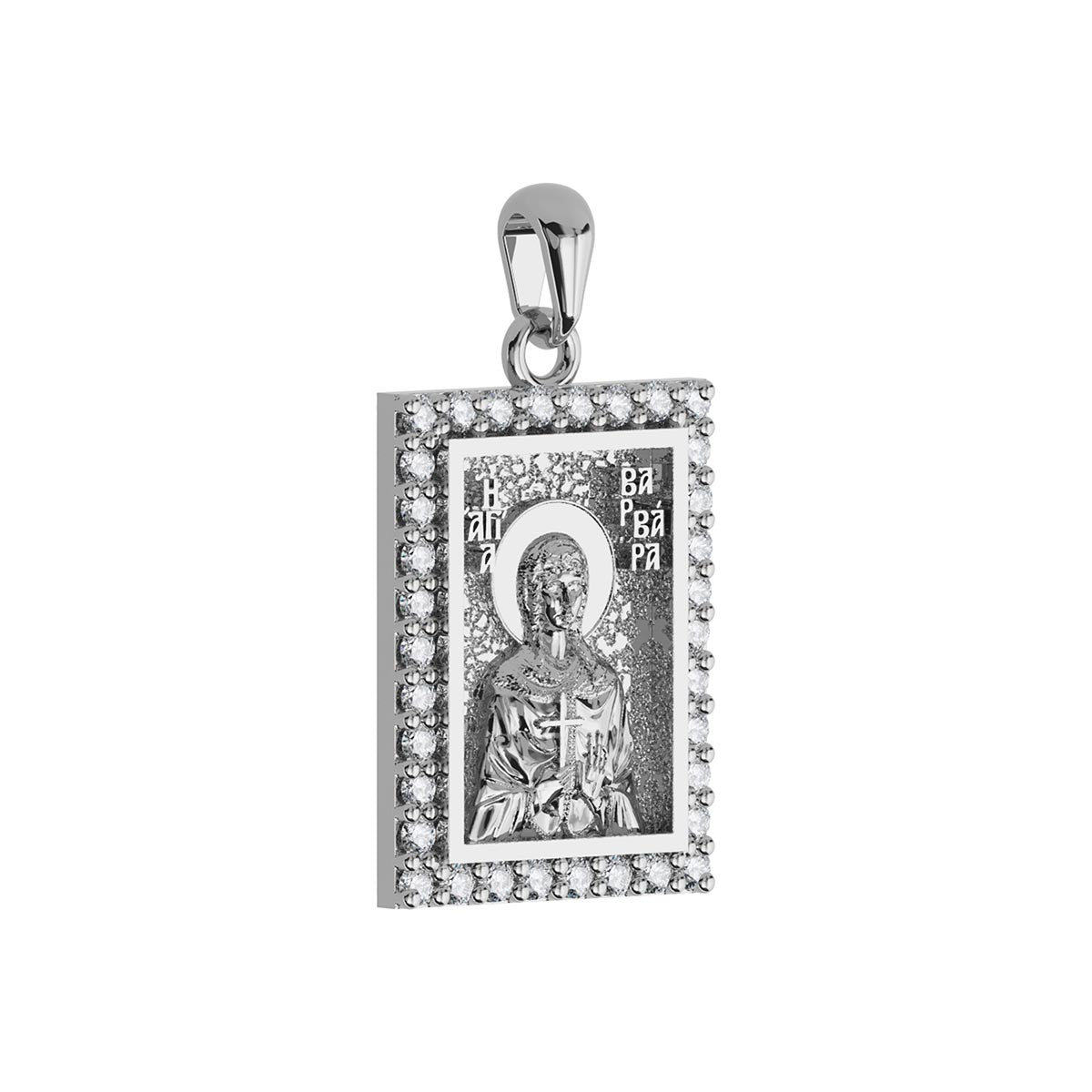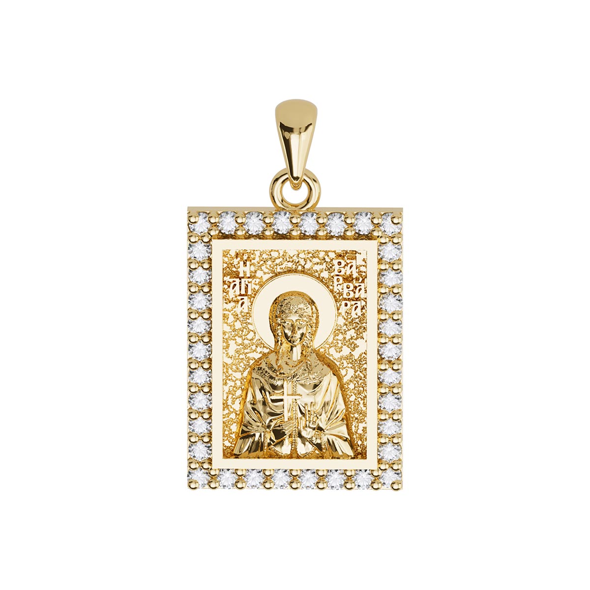 Saint Barbara Orthodox Icon Sculpted Small Pavé Tag Medal