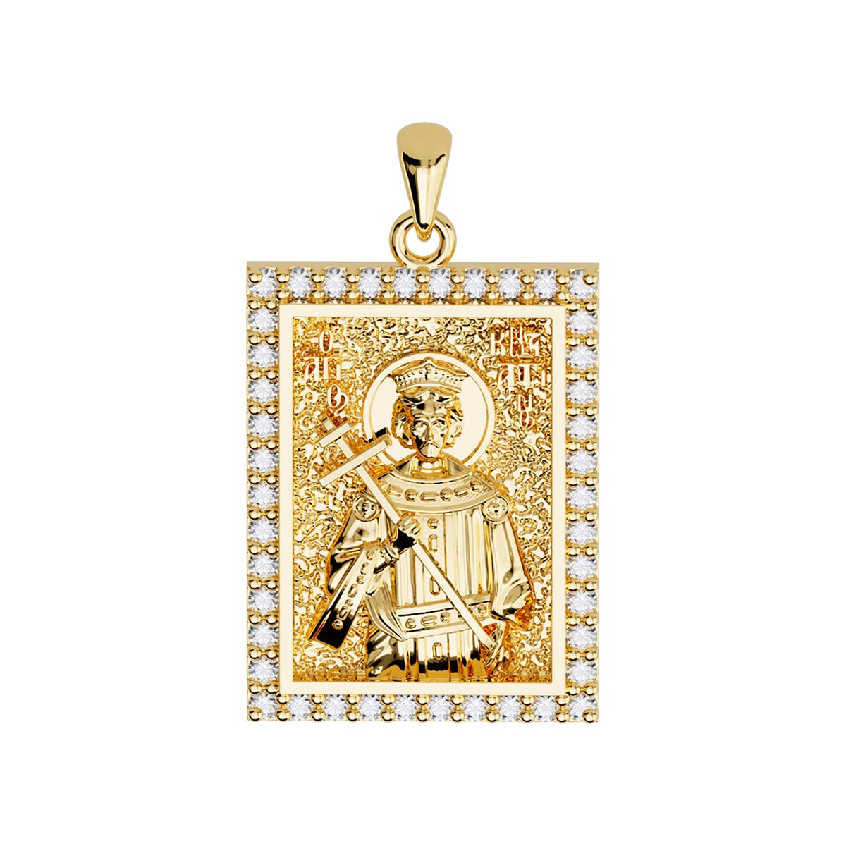 Saint Constantine (Konstantinos) the Great Orthodox Icon Sculpted Medium Pavé Tag Medal
