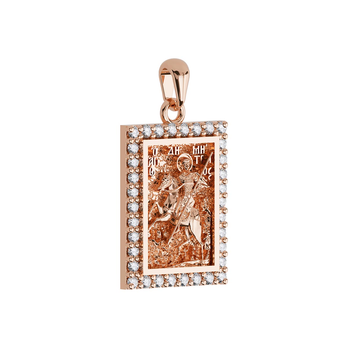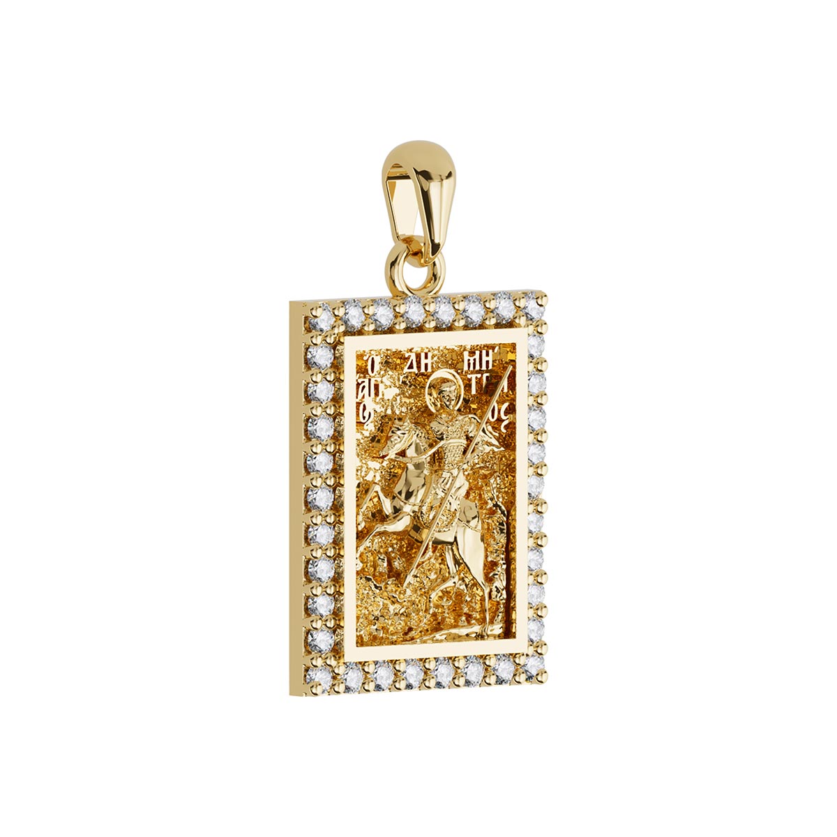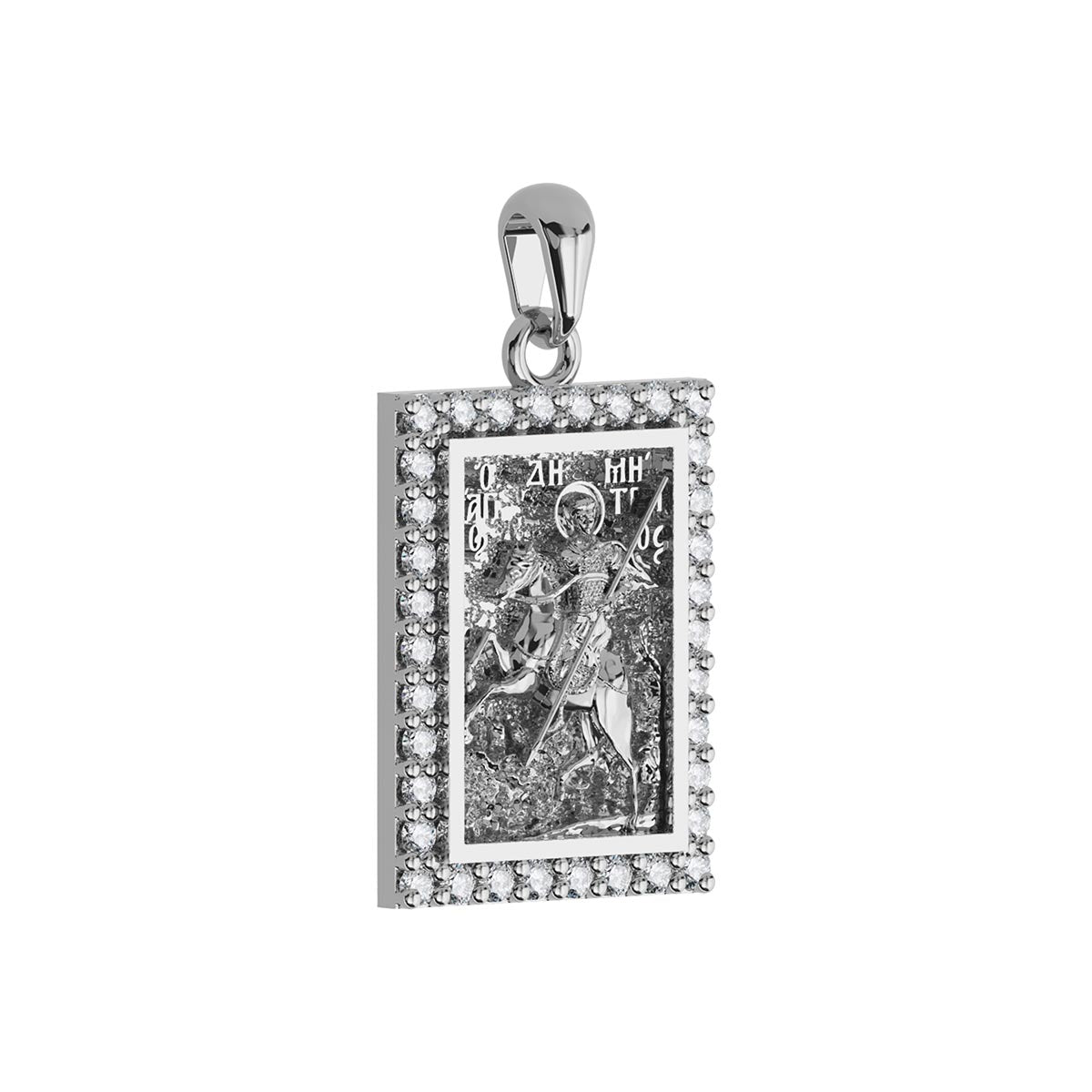 Saint Demetrios (Demetrius) Orthodox Icon Sculpted Small Pavé Tag Medal