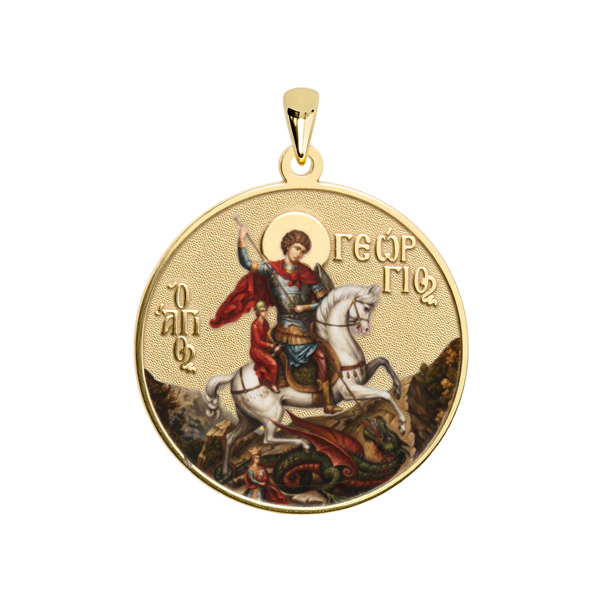 Saint George (Georgios) and the Dragon Orthodox Icon Sculpted Enamel Round Medal
