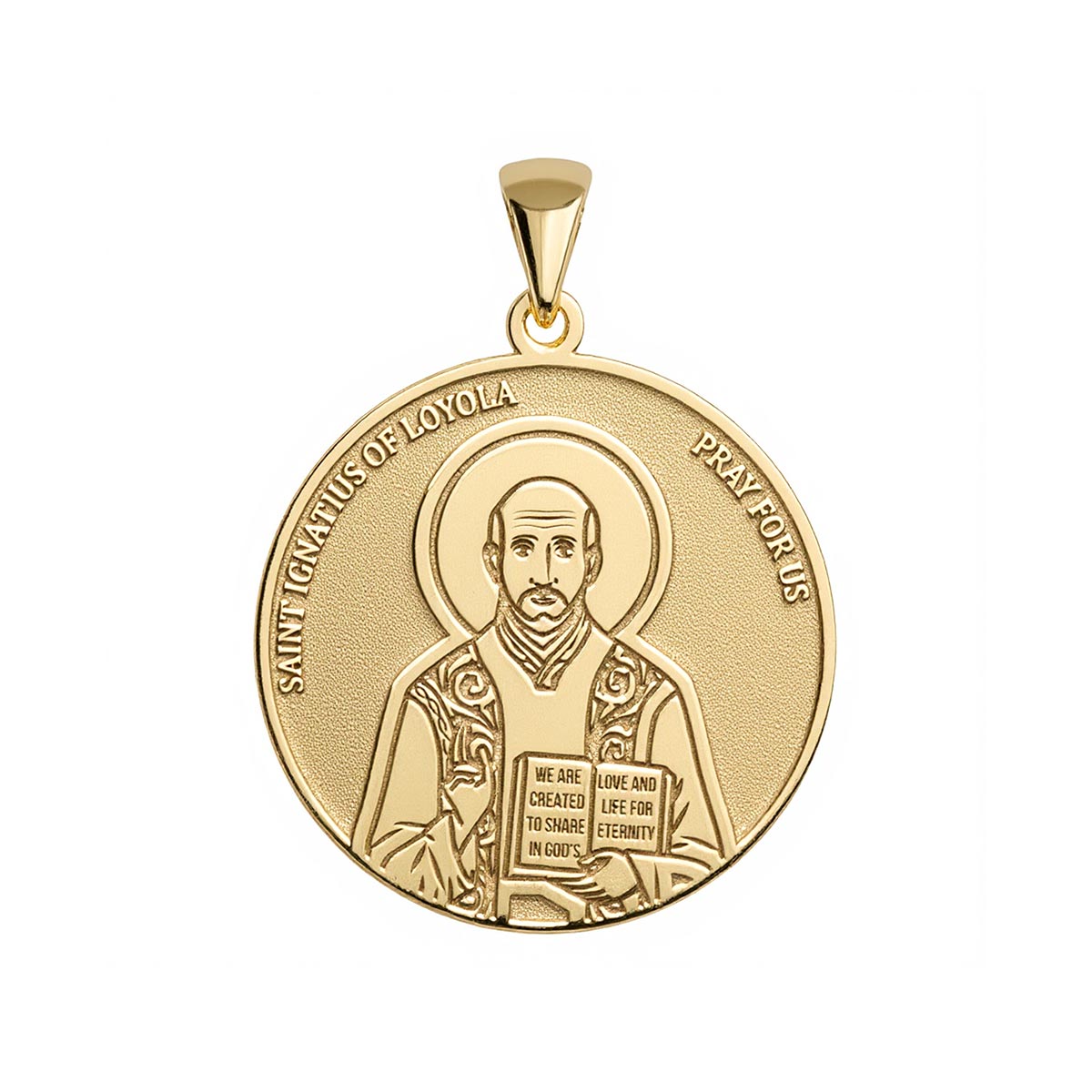 Connect with your faith through the Ignatius Loyola Round Religious Medal. Crafted with exquisite detail, this elegant pendant serves as a beautiful reminder of faith and devotion. Featuring a classic round design, it showcases a reverent depiction of Saint Ignatius, the revered founder of the Society of Jesus. Perfect for personal wear or as a thoughtful gift, this medal embodies a timeless sense of spirituality and refined elegance. Embrace the inspiration of Saint Ignatius with this exquisite piece of religious jewelry.