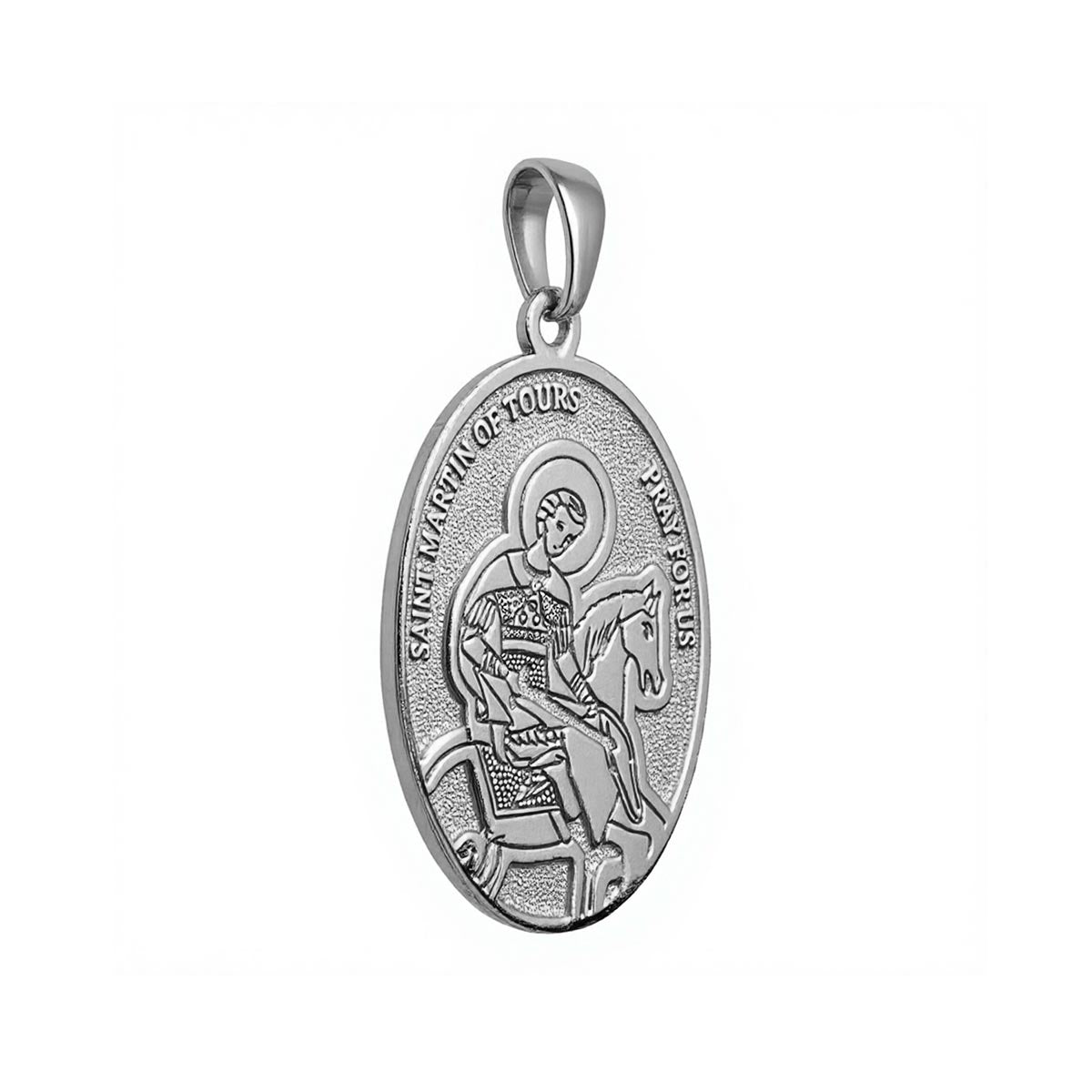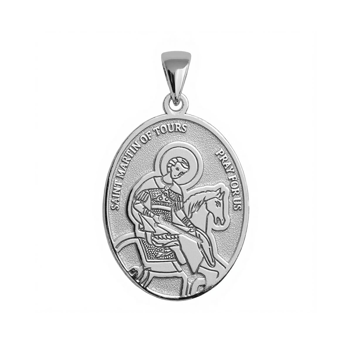 Experience the divine elegance of the Martin Tours Oval Religious Medal. Crafted with a timeless elegance, this sacred medal features a beautifully detailed depiction of Saint Martin, the beloved patron saint of soldiers and the poor. Wear this symbol of faith close to your heart, drawing inspiration from his compassion and courage. Perfect for gifting or personal devotion, it's a treasured piece to cherish always.