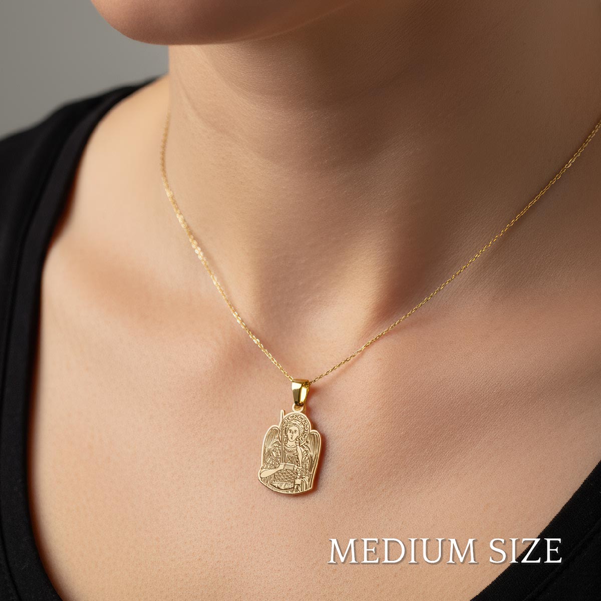 Embrace divine protection with this exquisite Saint Michael the Archangel Greek Orthodox Icon Pendant. Crafted with meticulous detail, this elegant figure pendant showcases the Archangel in a dignified portrayal, capturing the essence of faith and strength. Made with premium materials and a touch of luxury, this timeless piece serves as a beautiful reminder of spiritual guardianship. Perfect for devout individuals or as a meaningful gift, it's a radiant symbol of hope and divine presence, honoring the powerful Saint Michael.