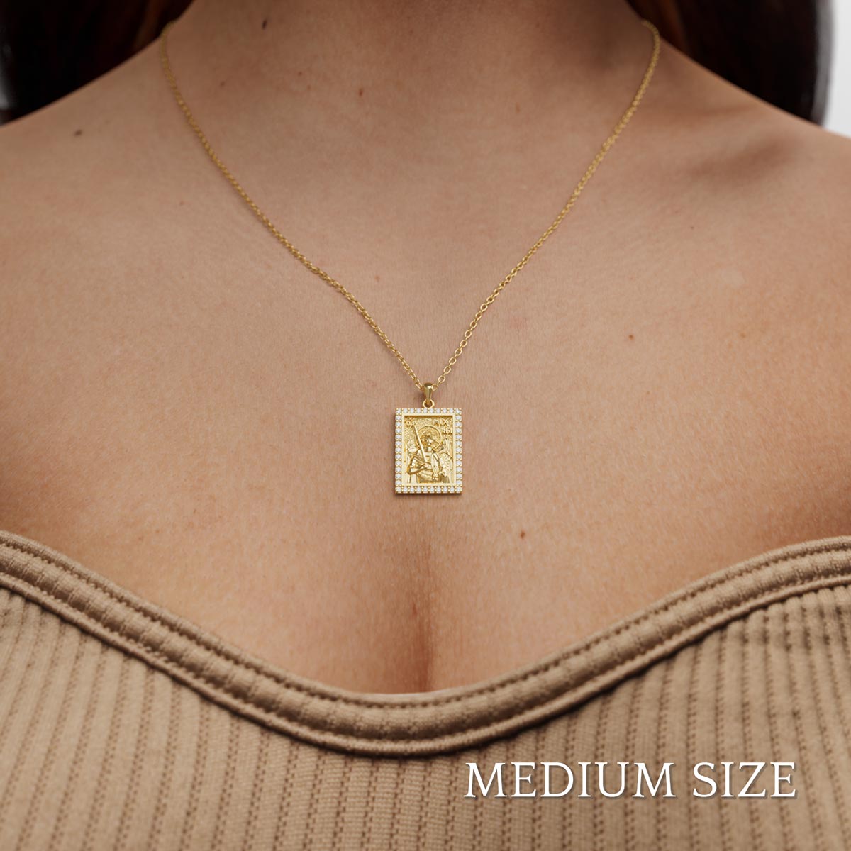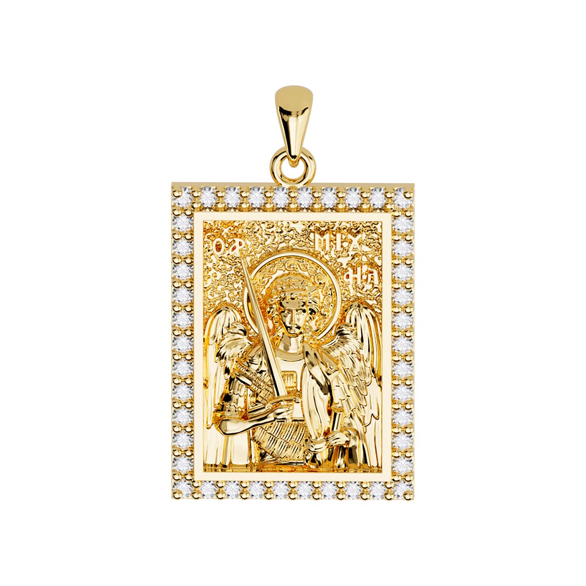 Saint Michael the Archangel Orthodox Icon Sculpted Medium Pavé Tag Medal