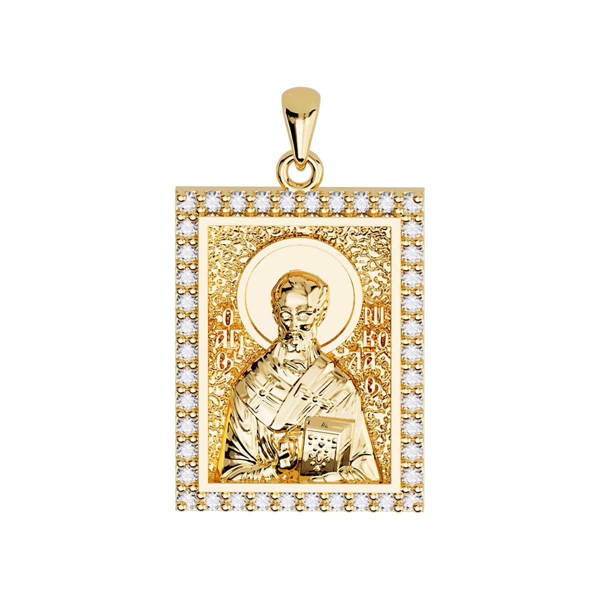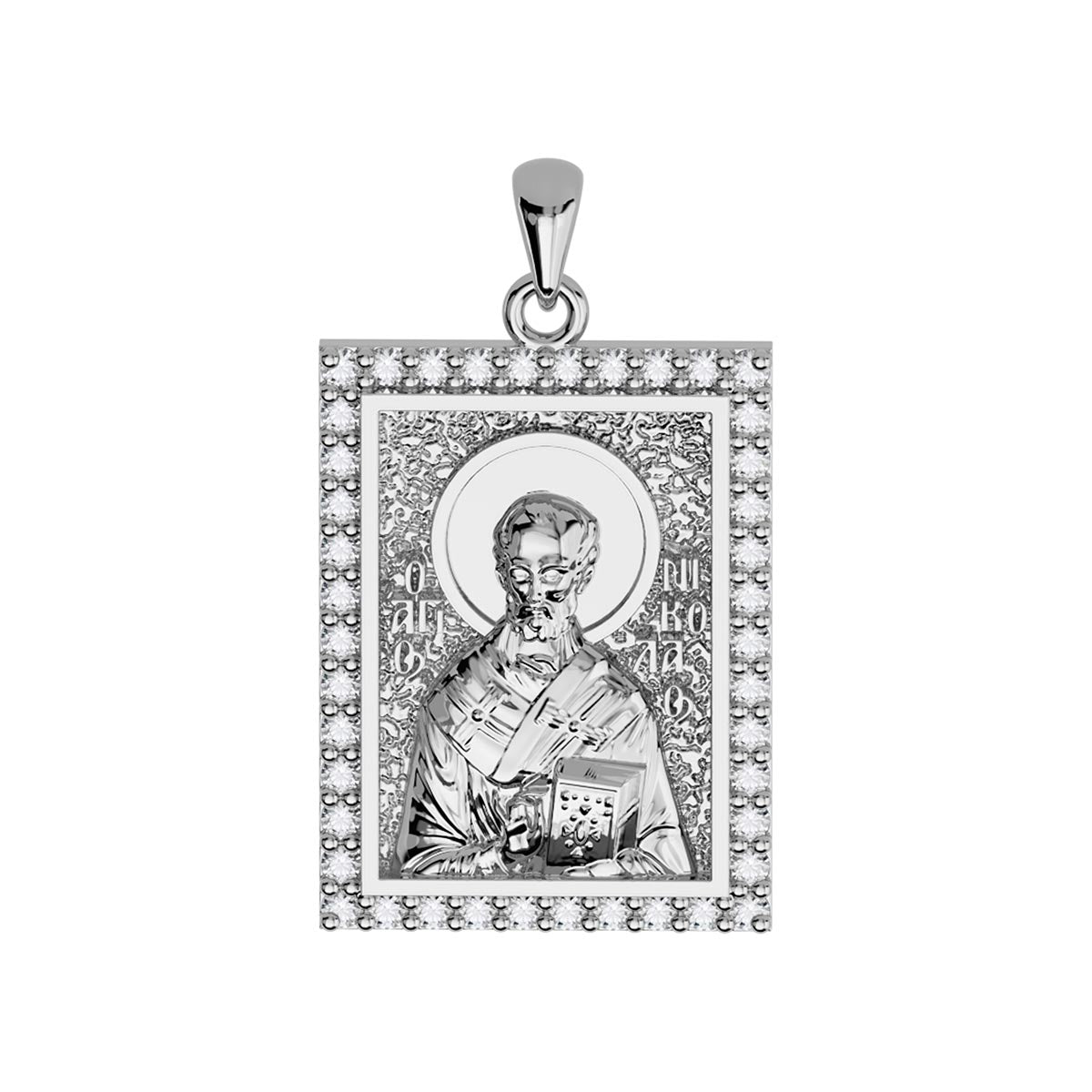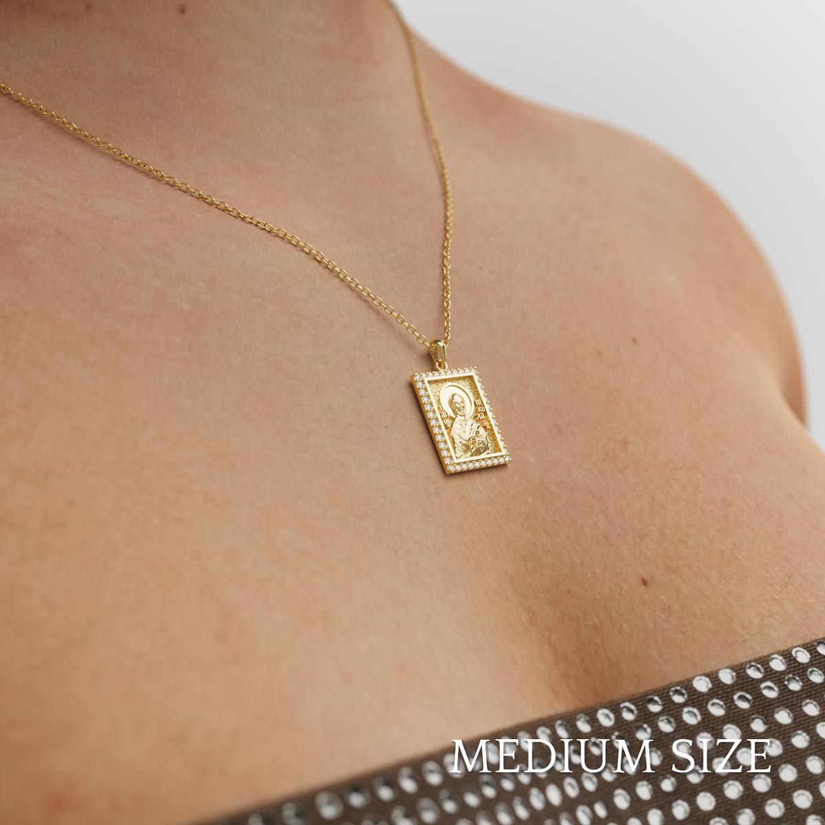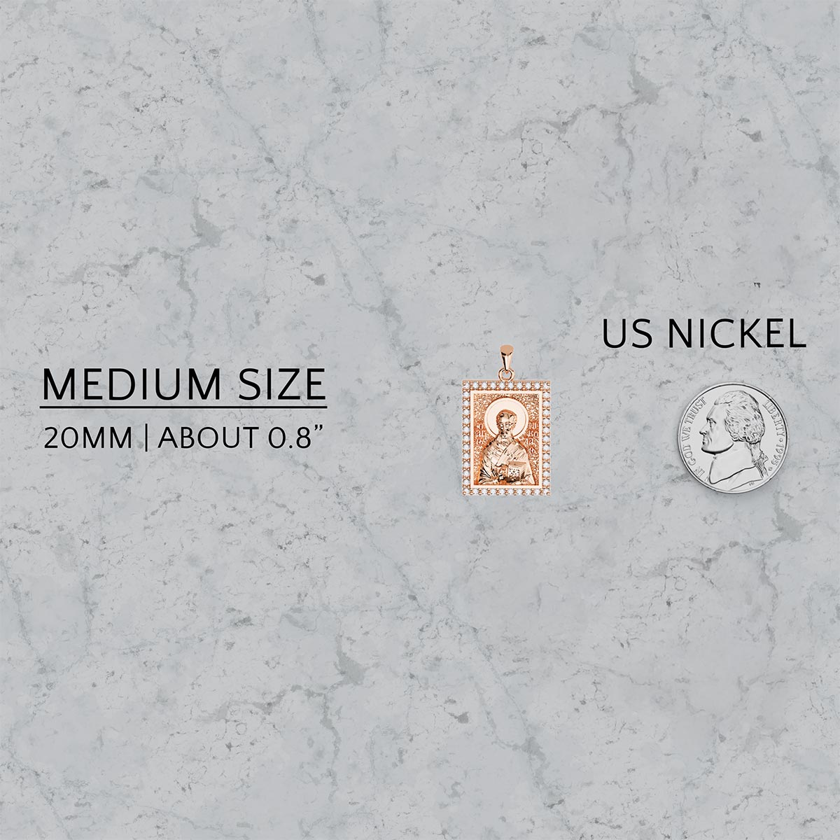 Saint Nicholas Orthodox Icon Sculpted Medium Pavé Tag Medal