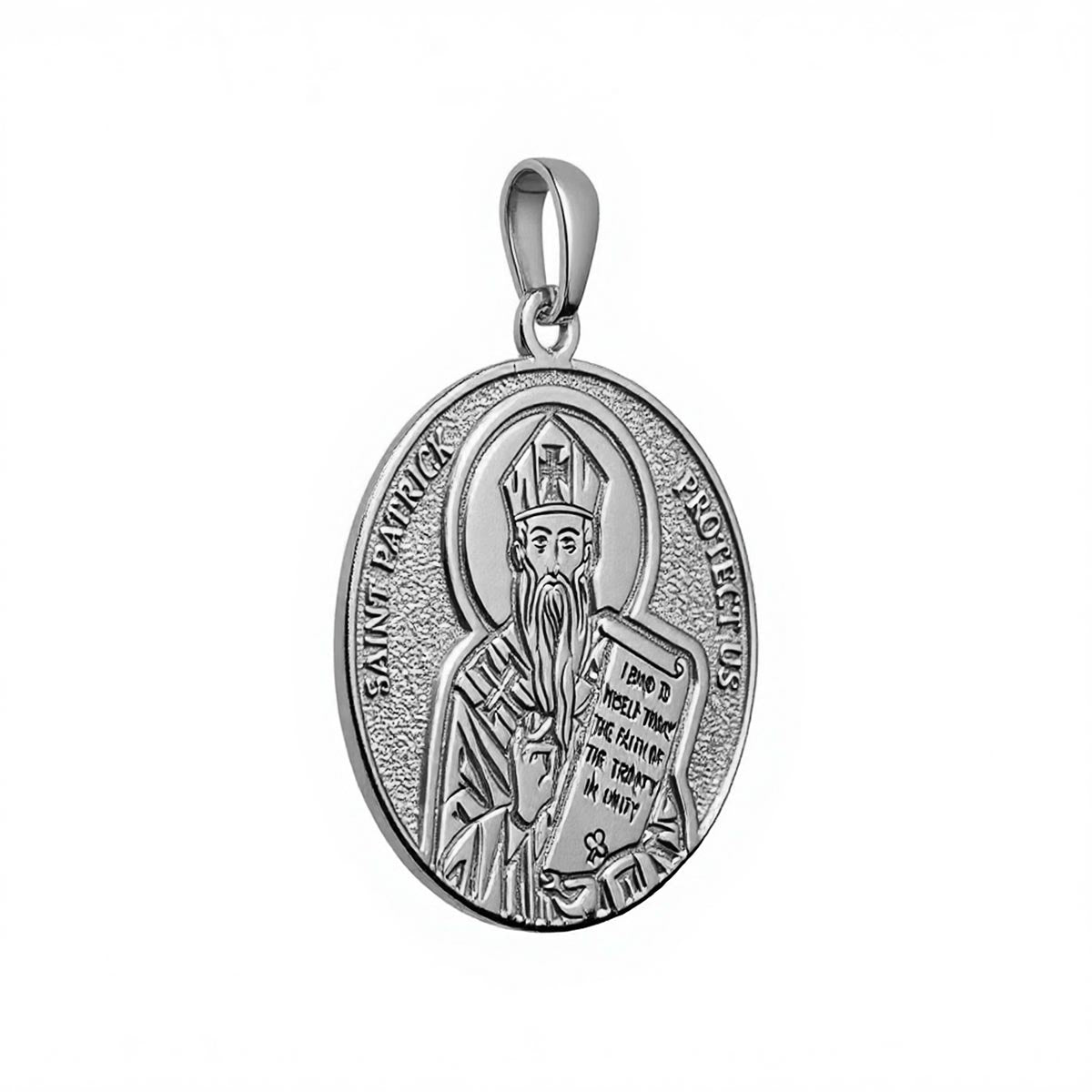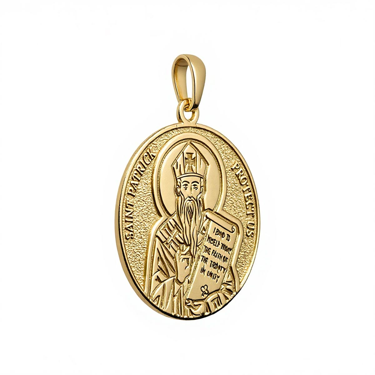 The Saint Patrick Round Religious Medal is a remarkable piece of jewelry available in solid gold or sterling silver. It features the image of Saint Patrick, the patron saint of Ireland, with the words "Saint Patrick Pray For Us" delicately carved into a round medal. This religious medal is perfect for those celebrating Irish heritage, carrying a symbol of faith and culture. With its intricate details and impeccable finishing, this medal is a timeless and inspiring accessory meant to uplift and empower the wearer.