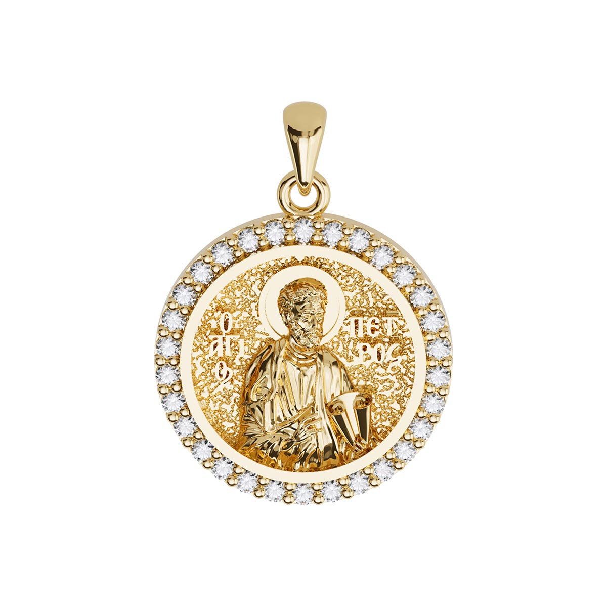 Saint Peter (Petros) the Apostle Orthodox Icon Sculpted Small Pavé Round Medal