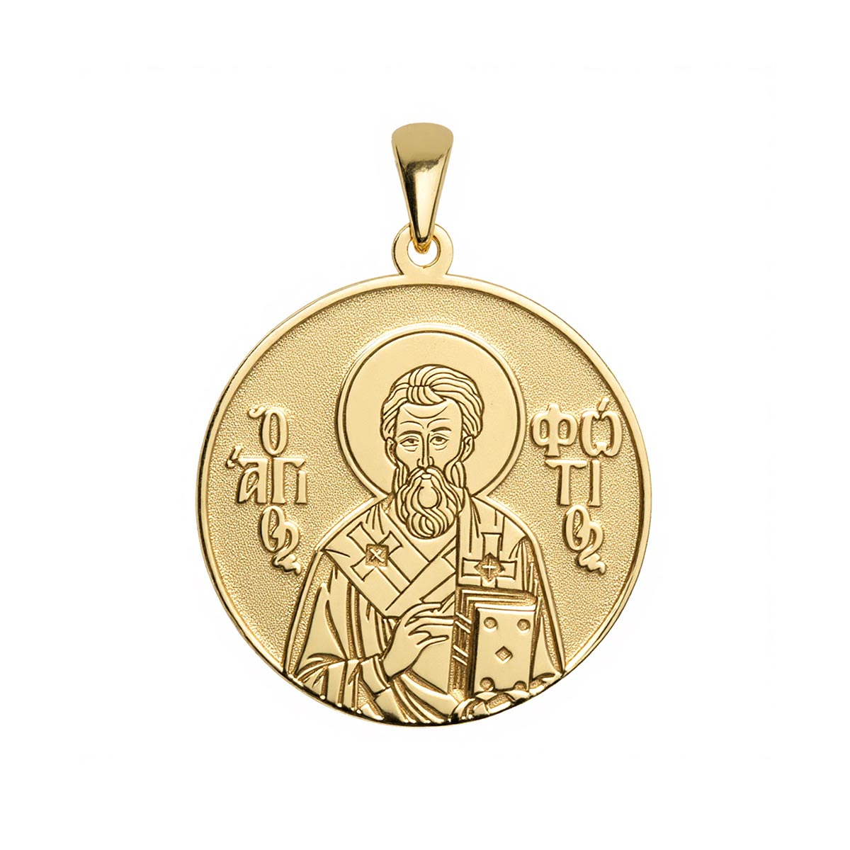 This highly detailed, historically accurate representation of the Greek Orthodox icon of Saint Photios (Photius) the Great is engraved into a round medal in the metal of your choice. Available with or without a chain, this piece makes for the perfect gift for yourself, or for a special someone’s name day! An important figure in the Eastern Orthodox Church, Photios was a theologian and patriarch of Constantinople. He is best known for his role in the Photian Schism, a major religious controversy that divided the church in the 9th century.
