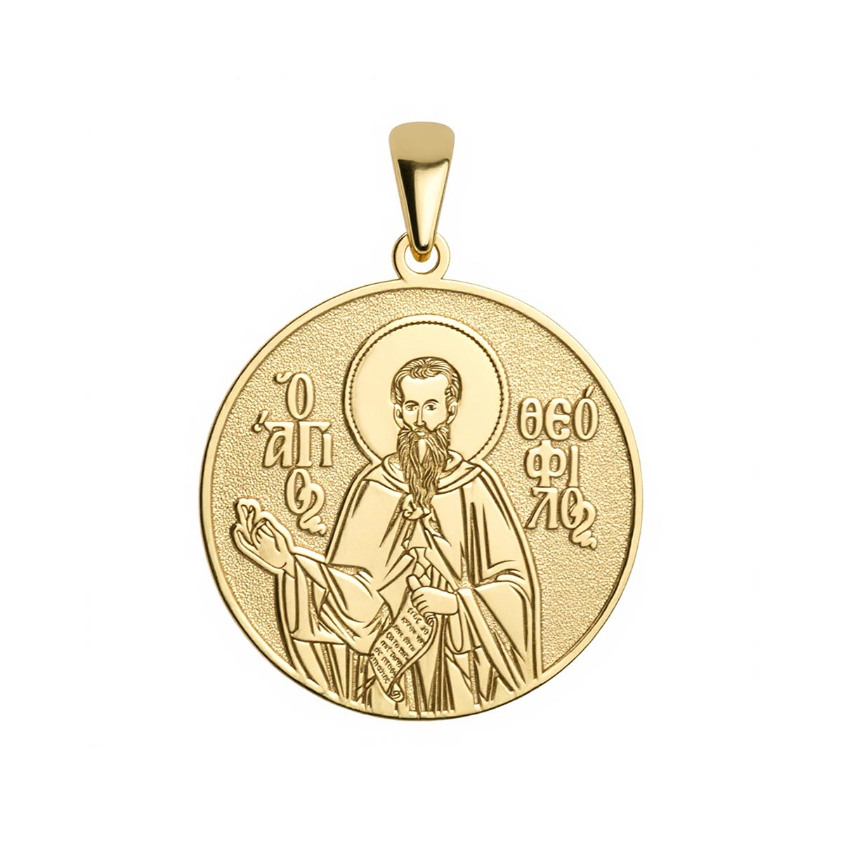 This highly detailed, historically accurate representation of the Greek Orthodox icon of Saint Theophilus is engraved into a round medal in the metal of your choice. Available with or without a chain, this piece makes for the perfect gift for yourself, or for a special someone’s name day! Saint Theophilus was a bishop of Antioch in the second century. He is best known for his theological writings and for his role in resolving a dispute between the Eastern and Western churches.
