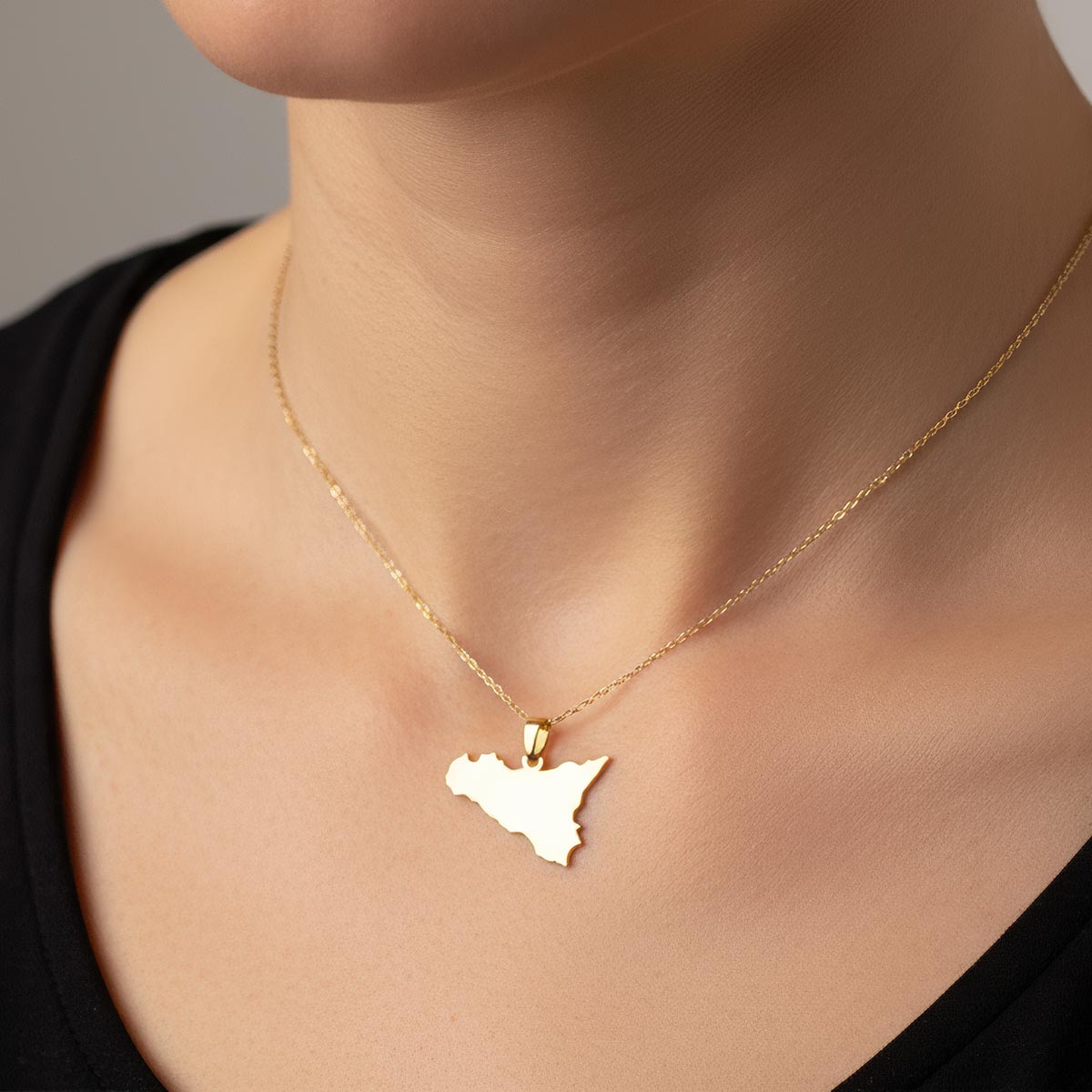 Discover the allure of Sicily with our exquisite Sicily Island Map Pendant. Crafted with meticulous detail, this elegant pendant captures the captivating contours of this Mediterranean jewel. Perfect for those with a deep connection to Sicily or a passion for its rich history and vibrant culture. Wear a piece of paradise close to your heart with this timeless and luxurious accessory. An ideal gift for yourself or a loved one, celebrating the enduring spirit of Sicily.