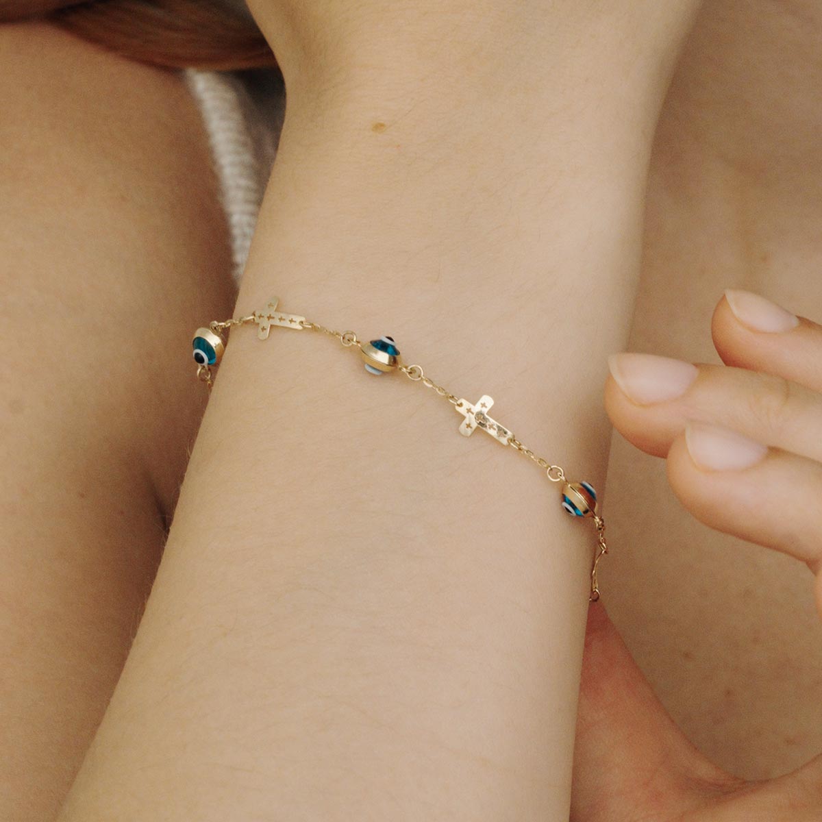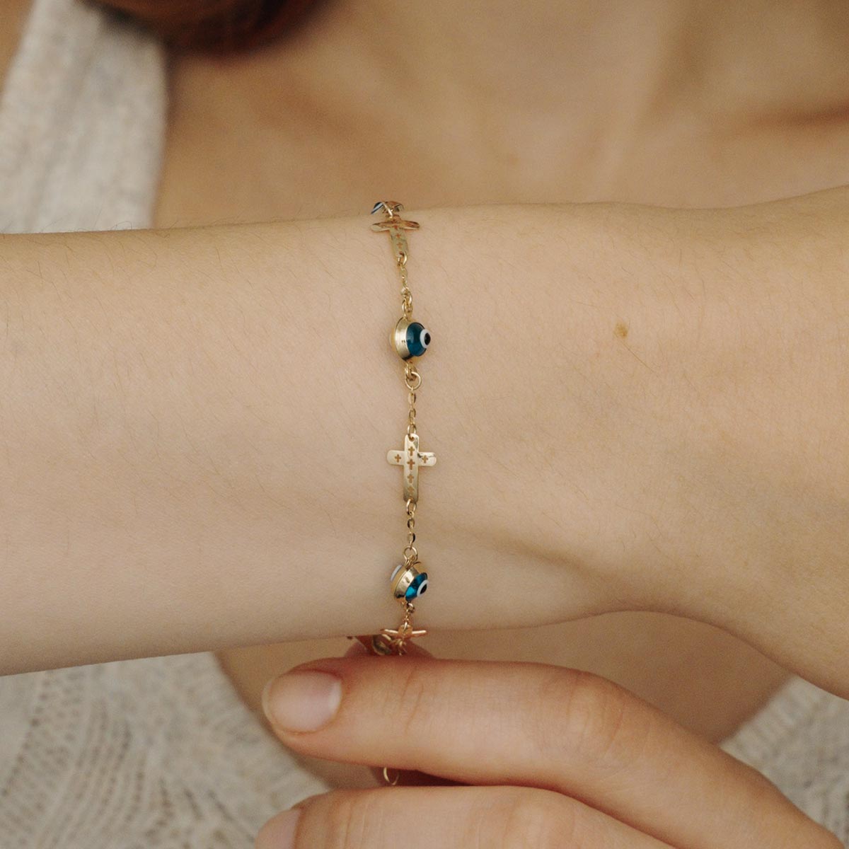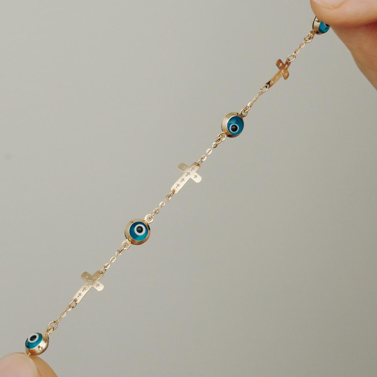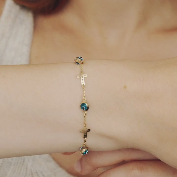 Sideways Cross Evil Eye Bracelet