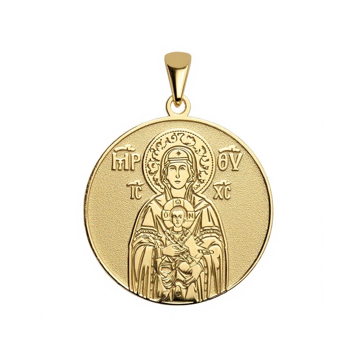 Virgin Mary Panagia Theotokos Greek Orthodox Icon Round Medal