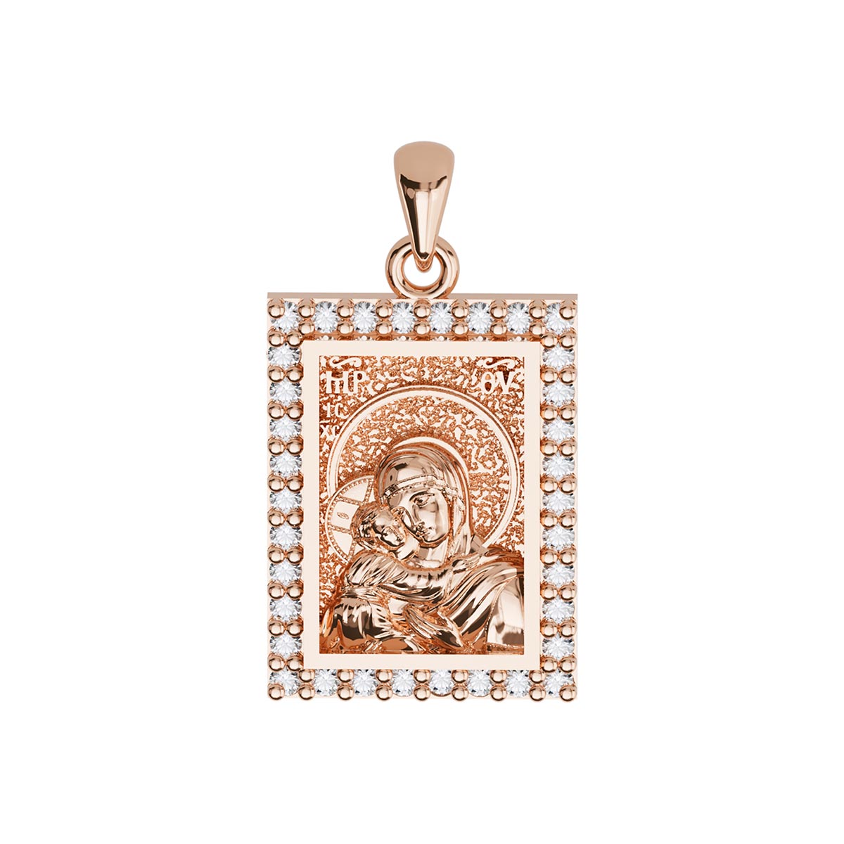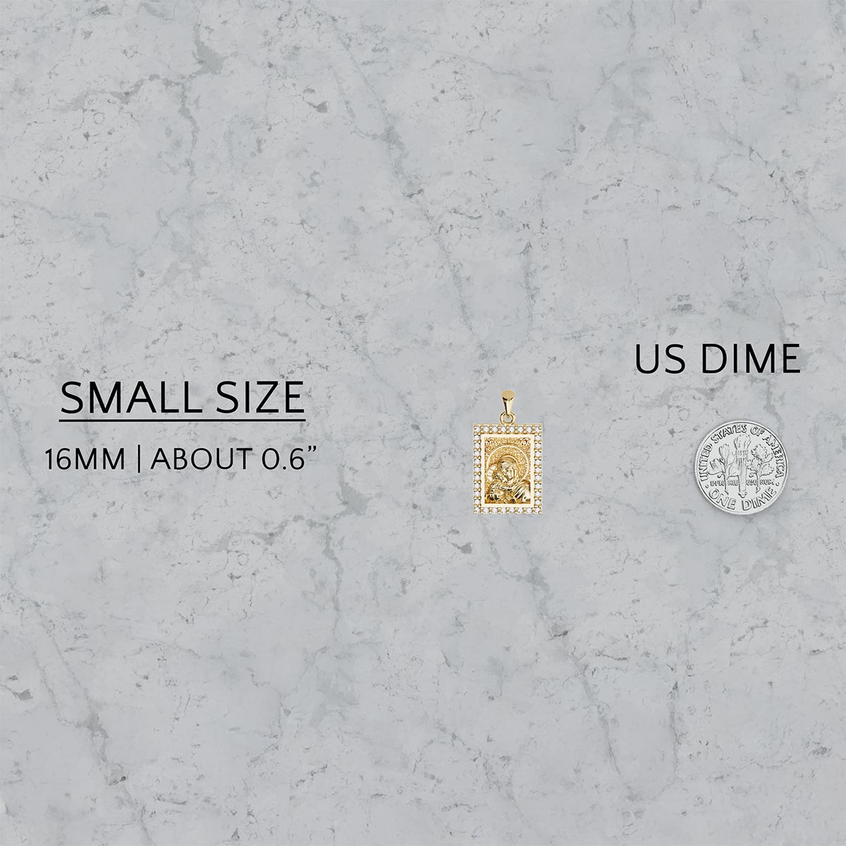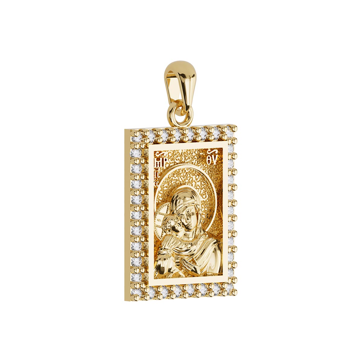 Virgin Mary Panagia Theotokos Sculpted Small Pavé Tag Medal